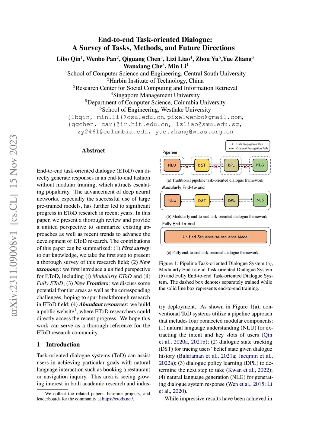End-to-end Task-oriented Dialogue: A Survey of Tasks, Methods, and