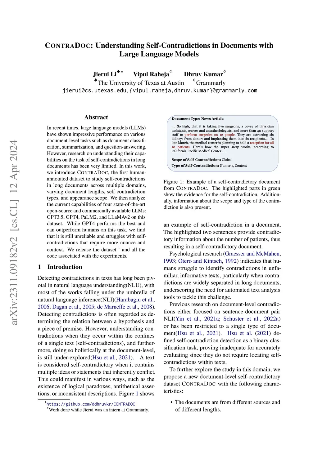 ContraDoc: Understanding Self-Contradictions in Documents with Large