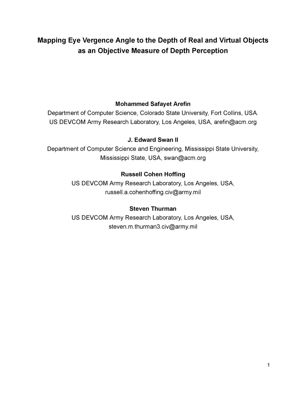 Mapping Eye Vergence Angle to the Depth of Real and Virtual Objects as