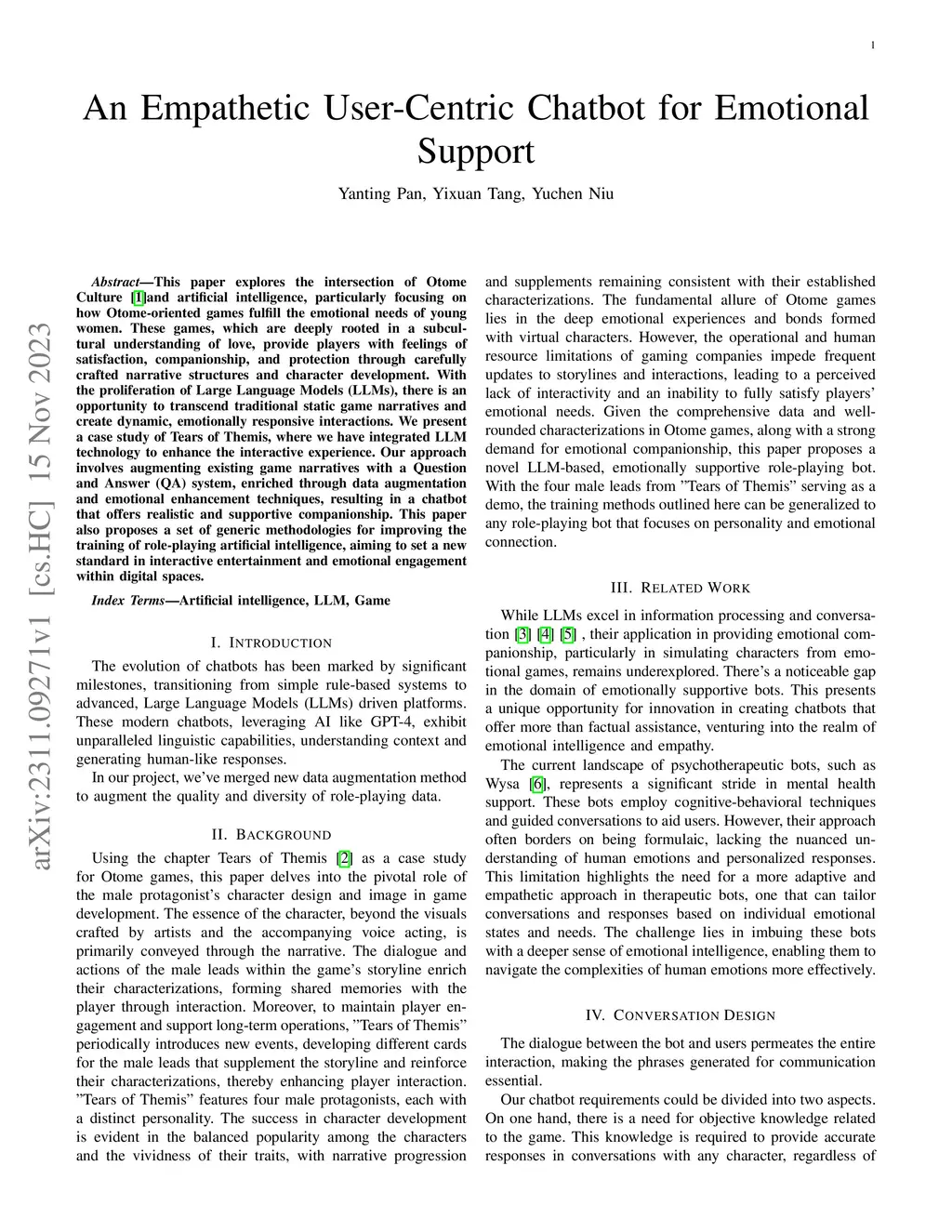 This paper explores the intersection of Otome Culture and artificial intelligence, particularly focusing on how Otome-oriented games fulfill the emotional needs of young women. These games, which are deeply rooted in a subcultural understanding of love, provide players with feelings of satisfaction, companionship, and protection through carefully crafted narrative structures and character development. With the proliferation of Large Language Models (LLMs), there is an opportunity to transcend traditional static game narratives and create dynamic, emotionally responsive interactions. We present a case study of Tears of Themis, where we have integrated LLM technology to enhance the interactive experience. Our approach involves augmenting existing game narratives with a Question and Answer (QA) system, enriched through data augmentation and emotional enhancement techniques, resulting in a chatbot that offers realistic and supportive companionship.