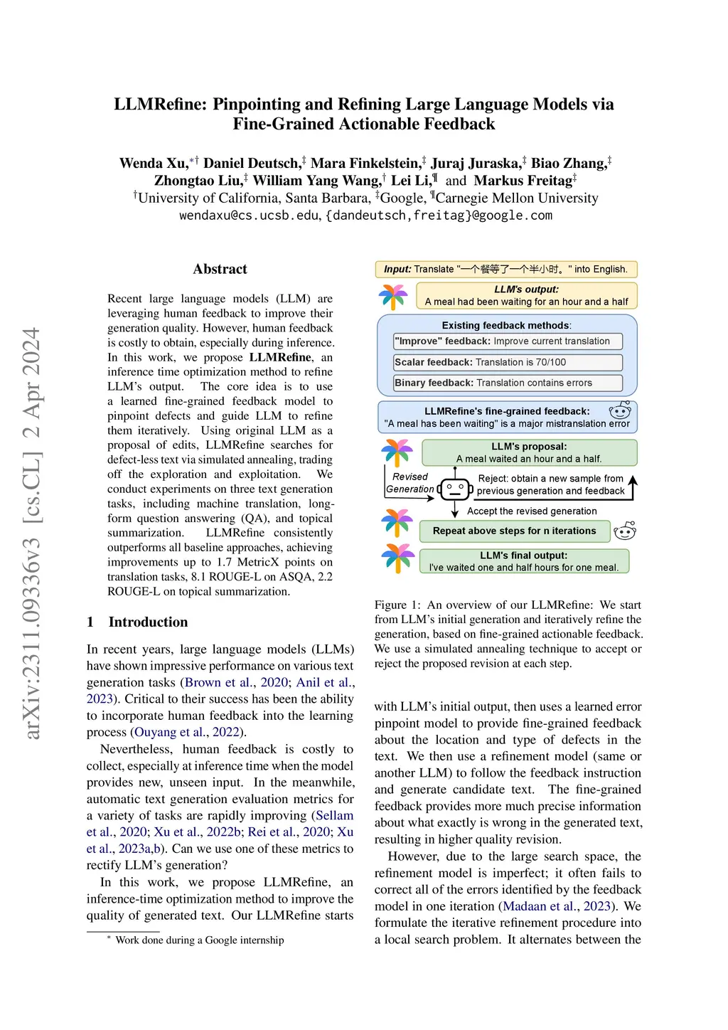 LLMRefine: Pinpointing and Refining Large Language Models via