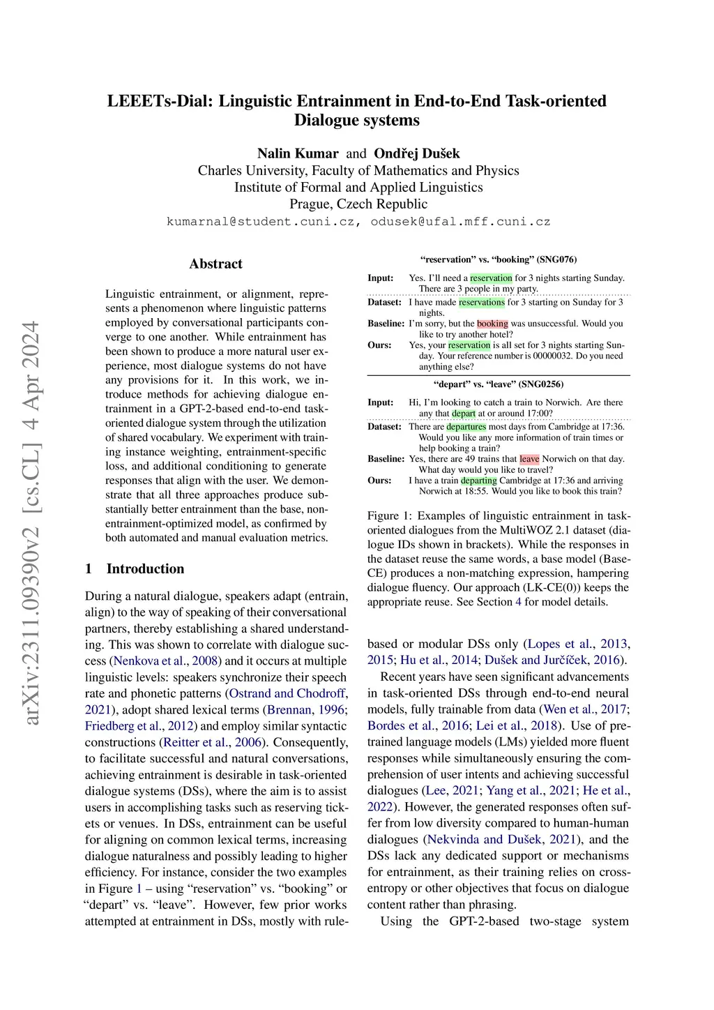 LEEETs-Dial: Linguistic Entrainment in End-to-End Task-oriented Dialogue
