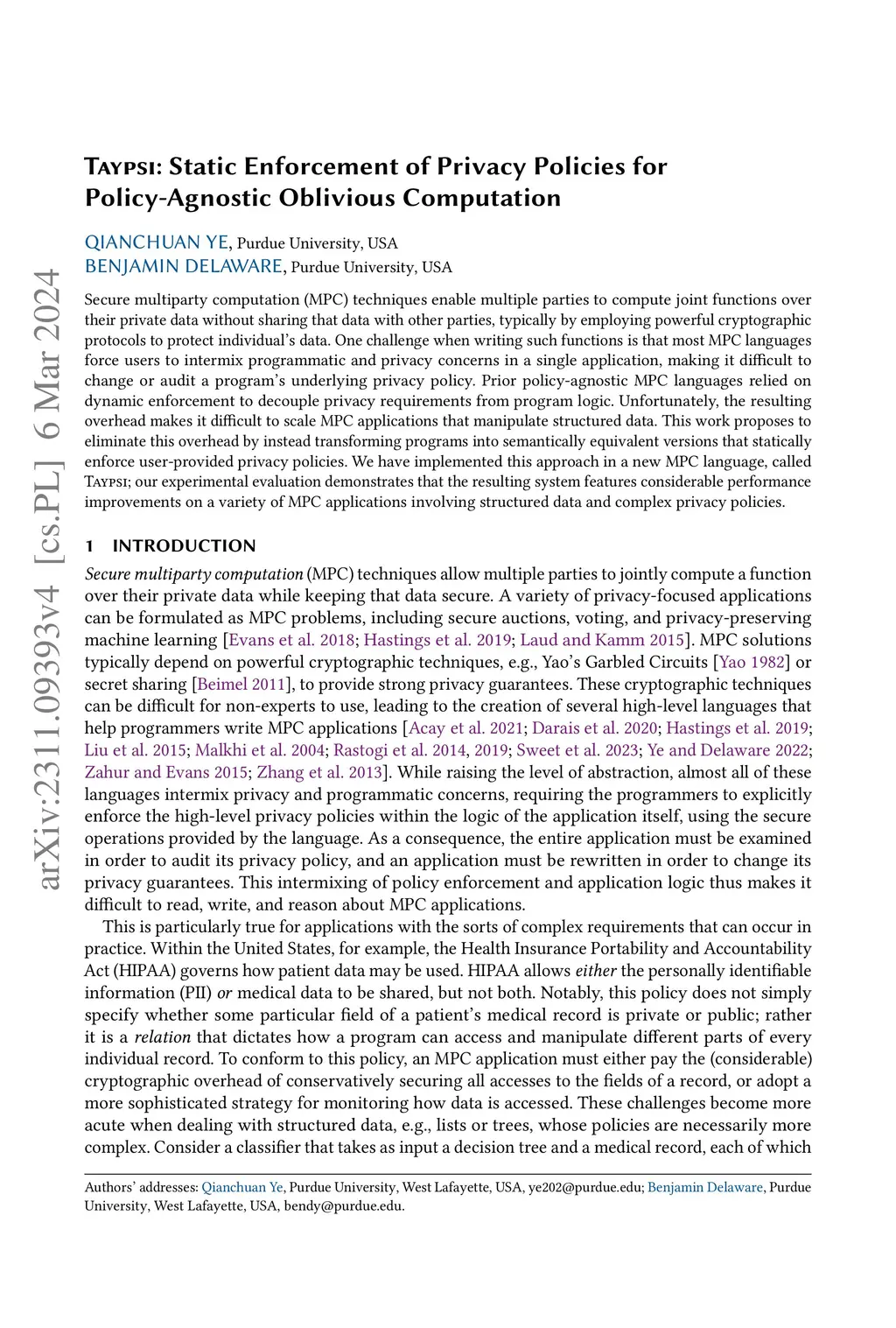 Taypsi: Static Enforcement of Privacy Policies for Policy-Agnostic