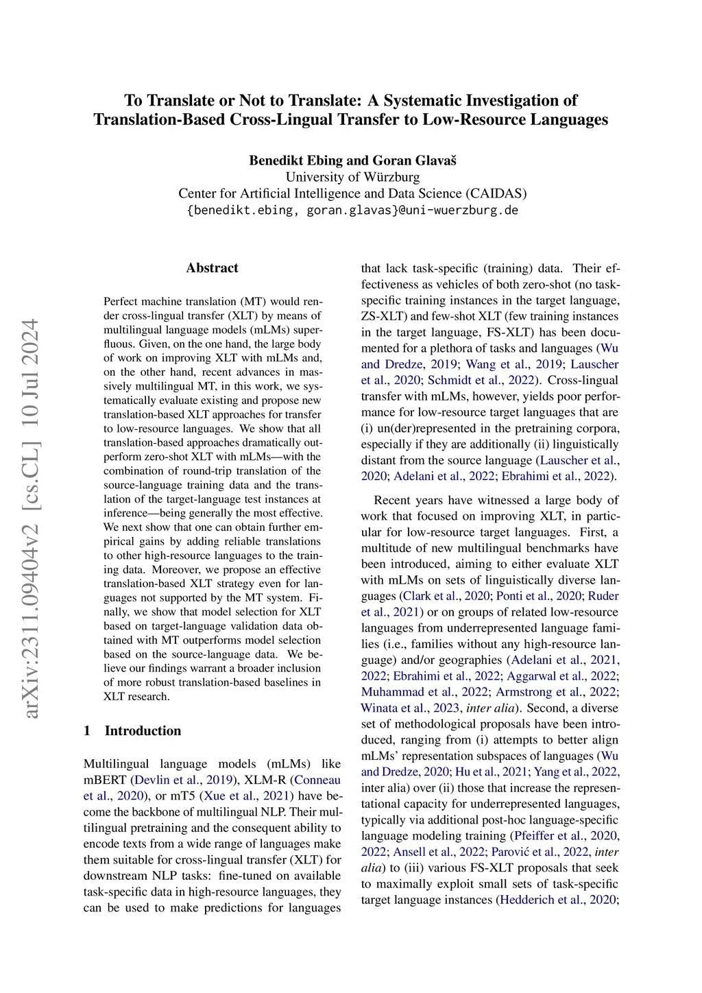 Translation-Based Cross-Lingual Transfer to Low-Resource Languages