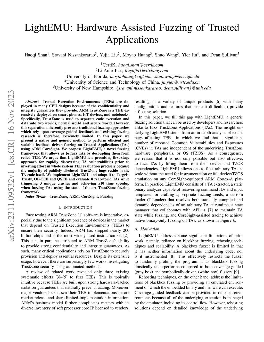 LightEMU: Hardware Assisted Fuzzing of Trusted Applications