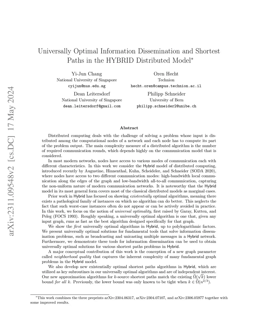 Universally Optimal Information Dissemination and Shortest Paths in the