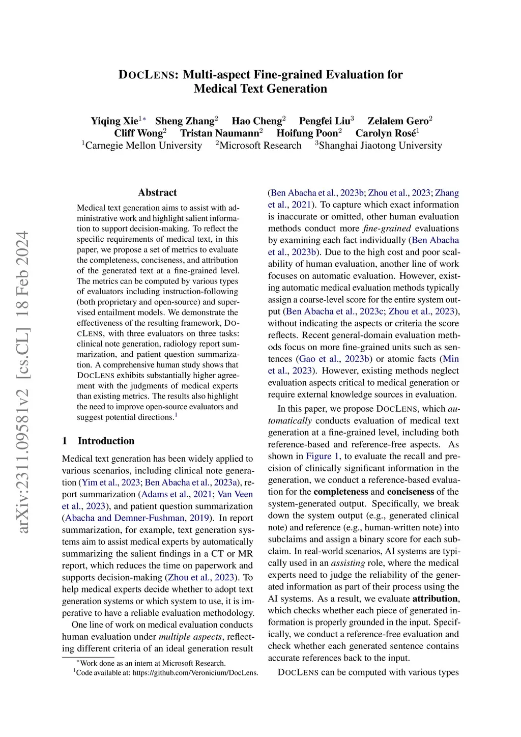DocLens: Multi-aspect Fine-grained Evaluation for Medical Text