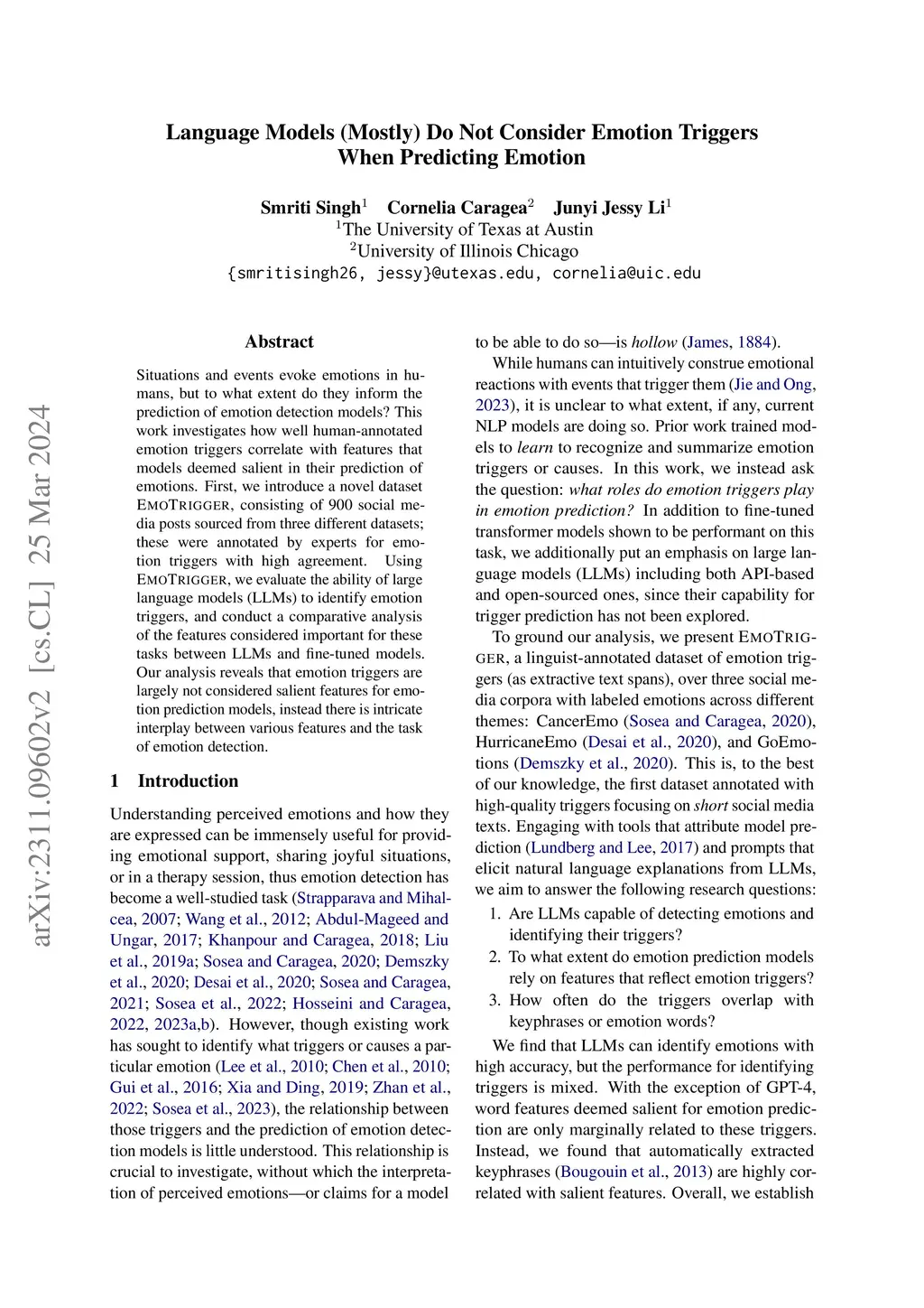 Language Models (Mostly) Do Not Consider Emotion Triggers When