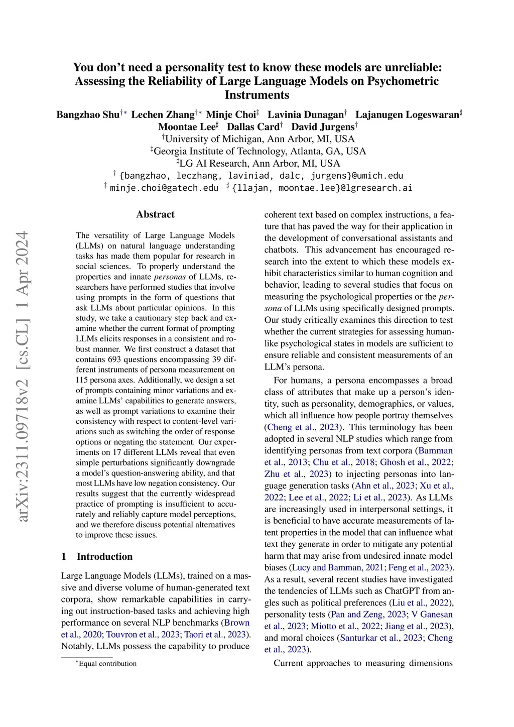 Assessing the Reliability of Large Language Models on Psychometric