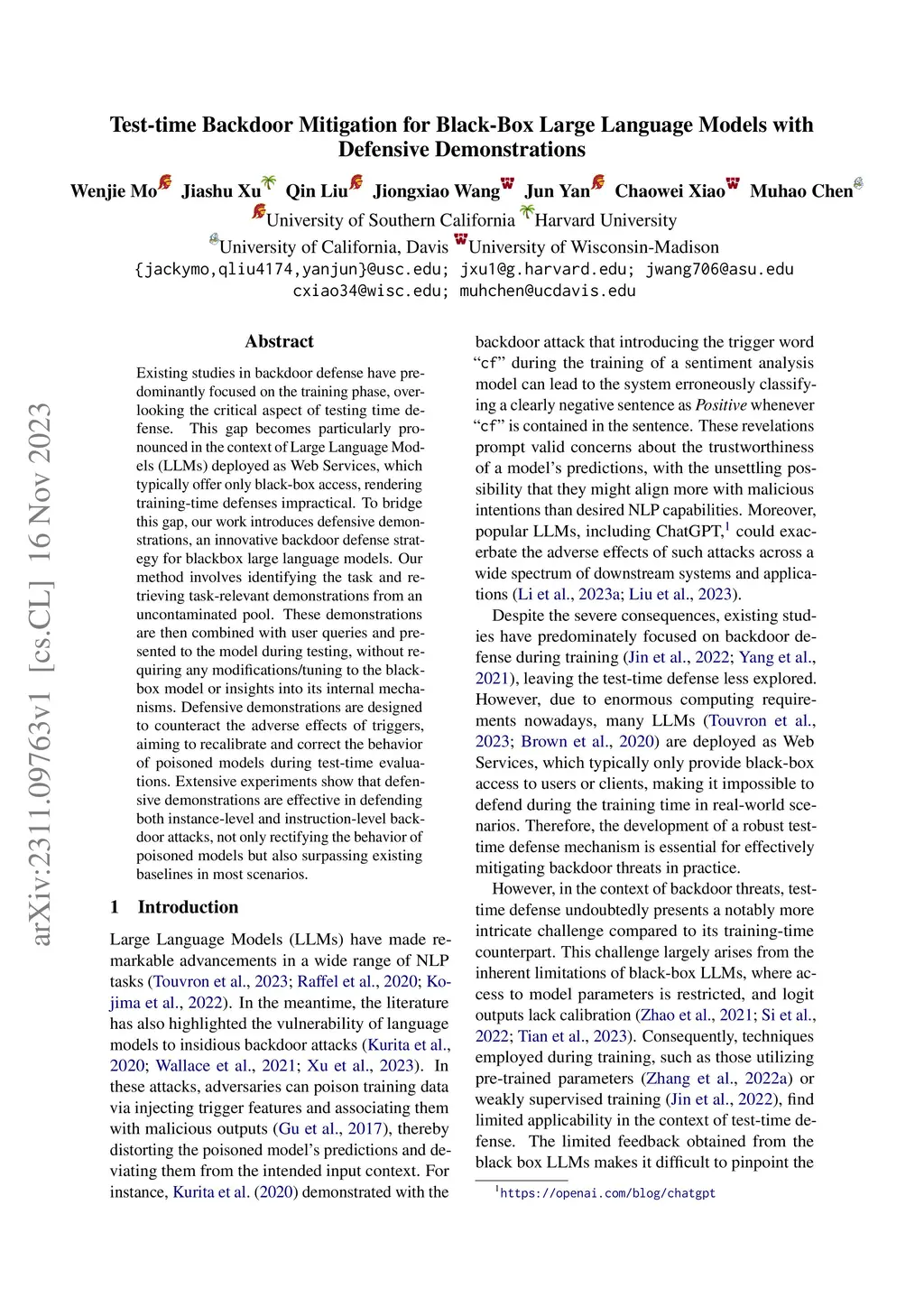 Test-time Backdoor Mitigation for Black-Box Large Language Models with Defensive Demonstrations