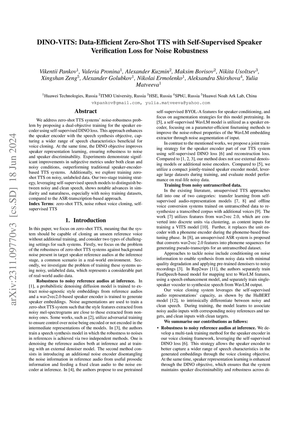 We address zero-shot TTS systems' noise-robustness problem by proposing a dual-objective training for the speaker encoder using self-supervised DINO loss. This approach enhances the speaker encoder with the speech synthesis objective, capturing a wider range of speech characteristics beneficial for voice cloning. At the same time, the DINO objective improves speaker representation learning, ensuring robustness to noise and speaker discriminability. Experiments demonstrate significant improvements in subjective metrics under both clean and noisy conditions, outperforming traditional speaker-encoderbased TTS systems. Additionally, we explore training zeroshot TTS on noisy, unlabeled data. Our two-stage training strategy, leveraging self-supervised speech models to distinguish between noisy and clean speech, shows notable advances in similarity and naturalness, especially with noisy training datasets, compared to the ASR-transcription-based approach.