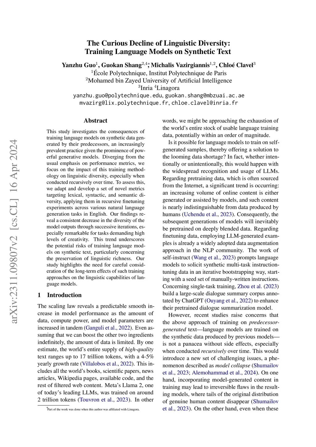 The Curious Decline of Linguistic Diversity: Training Language Models on