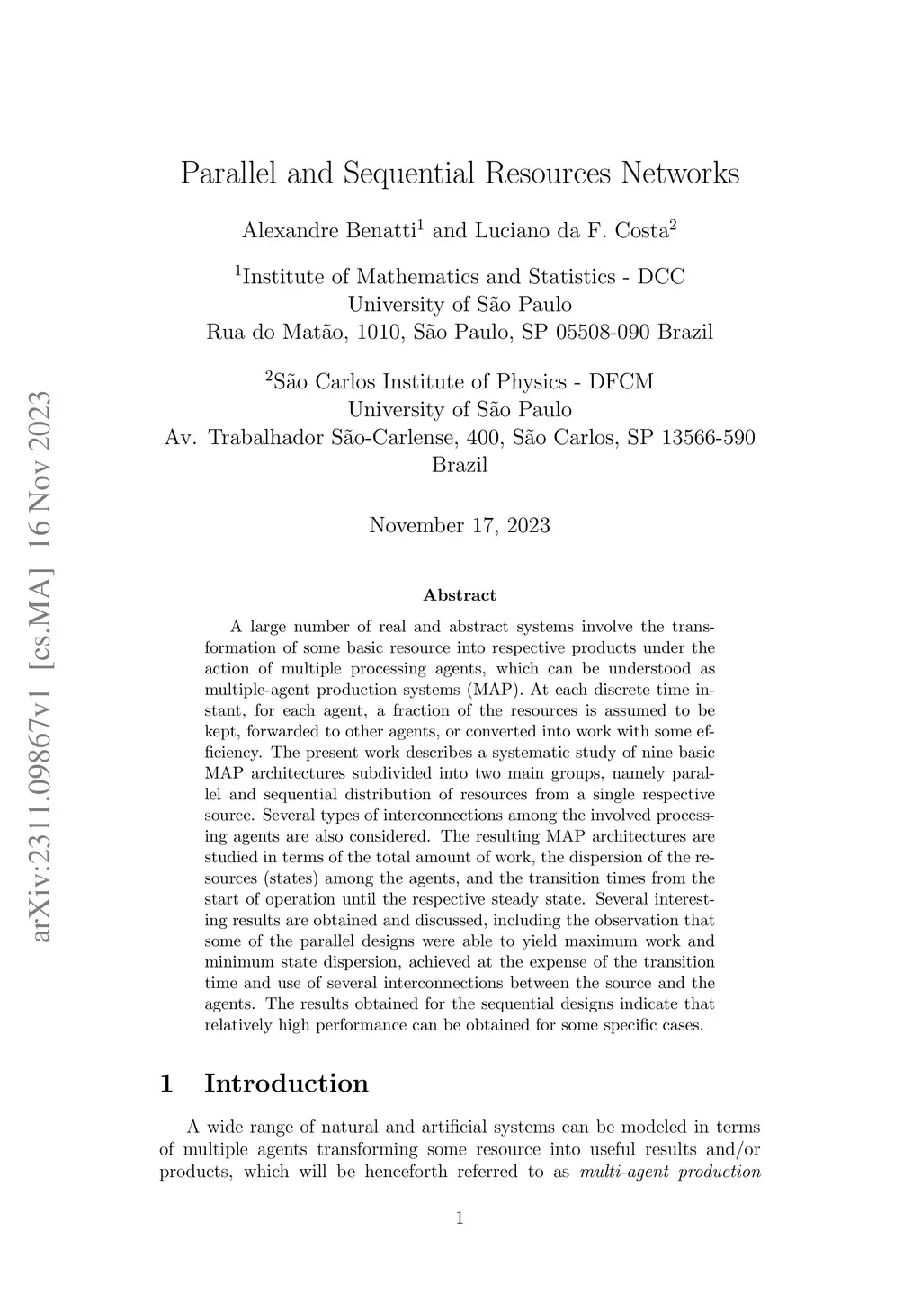 A large number of real and abstract systems involve the transformation of some basic resource into respective products under the action of multiple processing agents, which can be understood as multiple-agent production systems (MAP). At each discrete time instant, for each agent, a fraction of the resources is assumed to be kept, forwarded to other agents, or converted into work with some efficiency. The present work describes a systematic study of nine basic MAP architectures subdivided into two main groups, namely parallel and sequential distribution of resources from a single respective source. Several types of interconnections among the involved processing agents are also considered. The resulting MAP architectures are studied in terms of the total amount of work, the dispersion of the resources (states) among the agents, and the transition times from the start of operation until the respective steady state. Several interesting results are obtained and discussed, including the observation that some of the parallel designs were able to yield maximum work and minimum state dispersion, achieved at the expense of the transition time and use of several interconnections between the source and the agents. The results obtained for the sequential designs indicate that relatively high performance can be obtained for some specific cases.