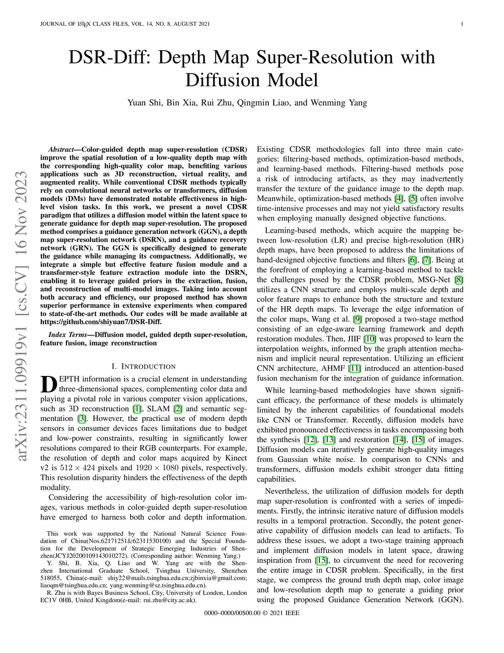 DSR-Diff: Depth Map Super-Resolution with Diffusion Model