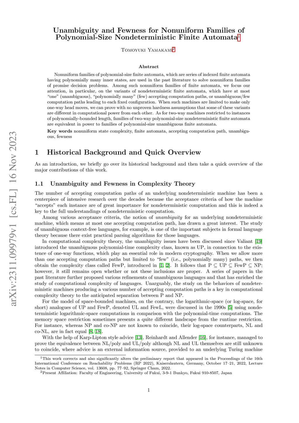 Nonuniform families of polynomial-size finite automata, which are series of indexed finite automata having polynomially many inner states, are used in the past literature to solve nonuniform families of promise decision problems. Among such nonuniform families of finite automata, we focus our attention, in particular, on the variants of nondeterministic finite automata, which have at most "one" (unambiguous), "polynomially many" (few) accepting computation paths, or unambiguous/few computation paths leading to each fixed configuration. When such machines are limited to make only one-way head moves, we can prove with no unproven hardness assumptions that some of these variants are different in computational power from each other. As for two-way machines restricted to instances of polynomially-bounded length, families of two-way polynomial-size nondeterministic finite automata are equivalent in power to families of polynomial-size unambiguous finite automata.