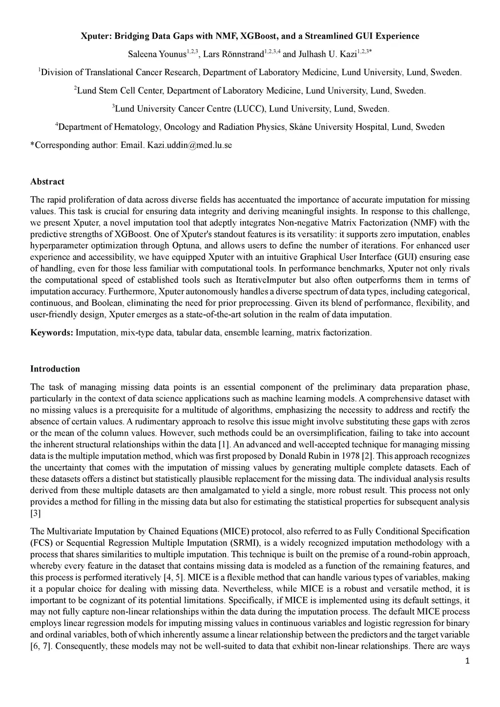 The rapid proliferation of data across diverse fields has accentuated the importance of accurate imputation for missing values. This task is crucial for ensuring data integrity and deriving meaningful insights. In response to this challenge, we present Xputer, a novel imputation tool that adeptly integrates Non-negative Matrix Factorization (NMF) with the predictive strengths of XGBoost. One of Xputer's standout features is its versatility: it supports zero imputation, enables hyperparameter optimization through Optuna, and allows users to define the number of iterations. For enhanced user experience and accessibility, we have equipped Xputer with an intuitive Graphical User Interface (GUI) ensuring ease of handling, even for those less familiar with computational tools. In performance benchmarks, Xputer not only rivals the computational speed of established tools such as IterativeImputer but also often outperforms them in terms of imputation accuracy. Furthermore, Xputer autonomously handles a diverse spectrum of data types, including categorical, continuous, and Boolean, eliminating the need for prior preprocessing. Given its blend of performance, flexibility, and user-friendly design, Xputer emerges as a state-of-the-art solution in the realm of data imputation.