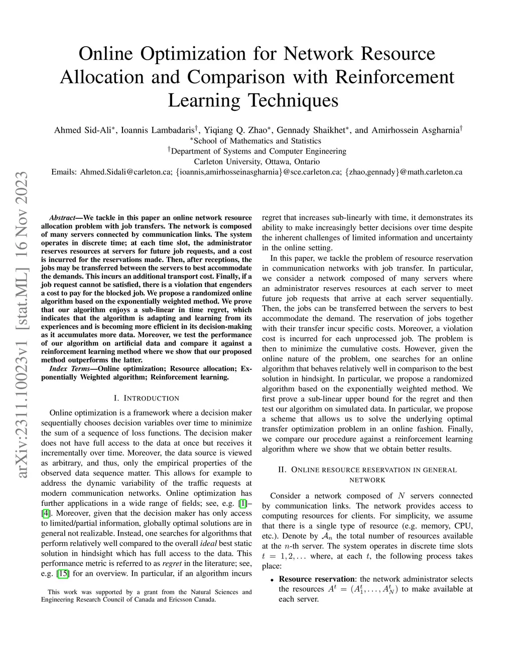 Online Optimization for Network Resource Allocation and Comparison with