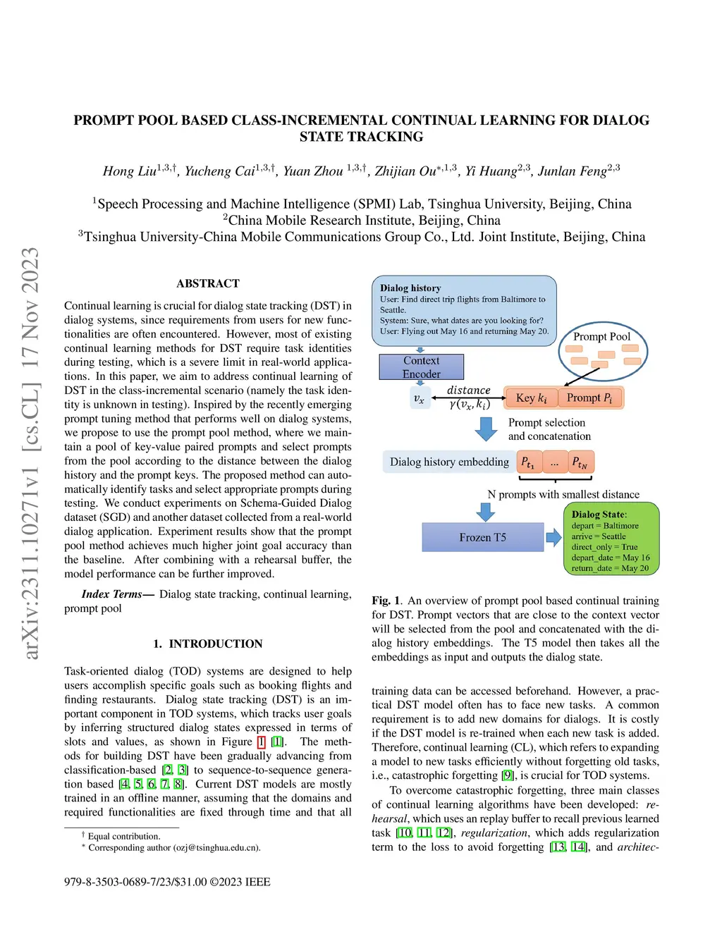 Prompt Pool based Class-Incremental Continual Learning for Dialog State