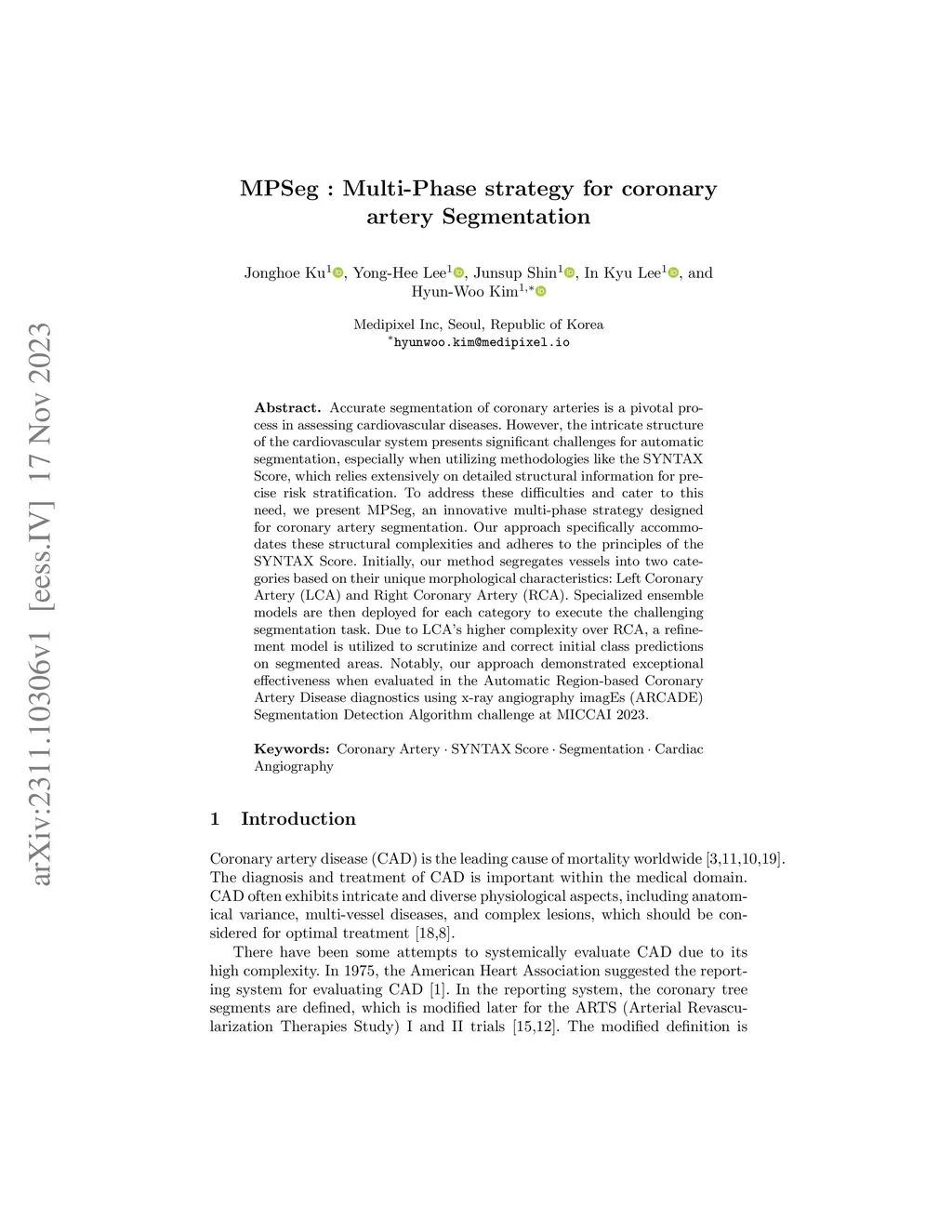 MPSeg : Multi-Phase strategy for coronary artery Segmentation