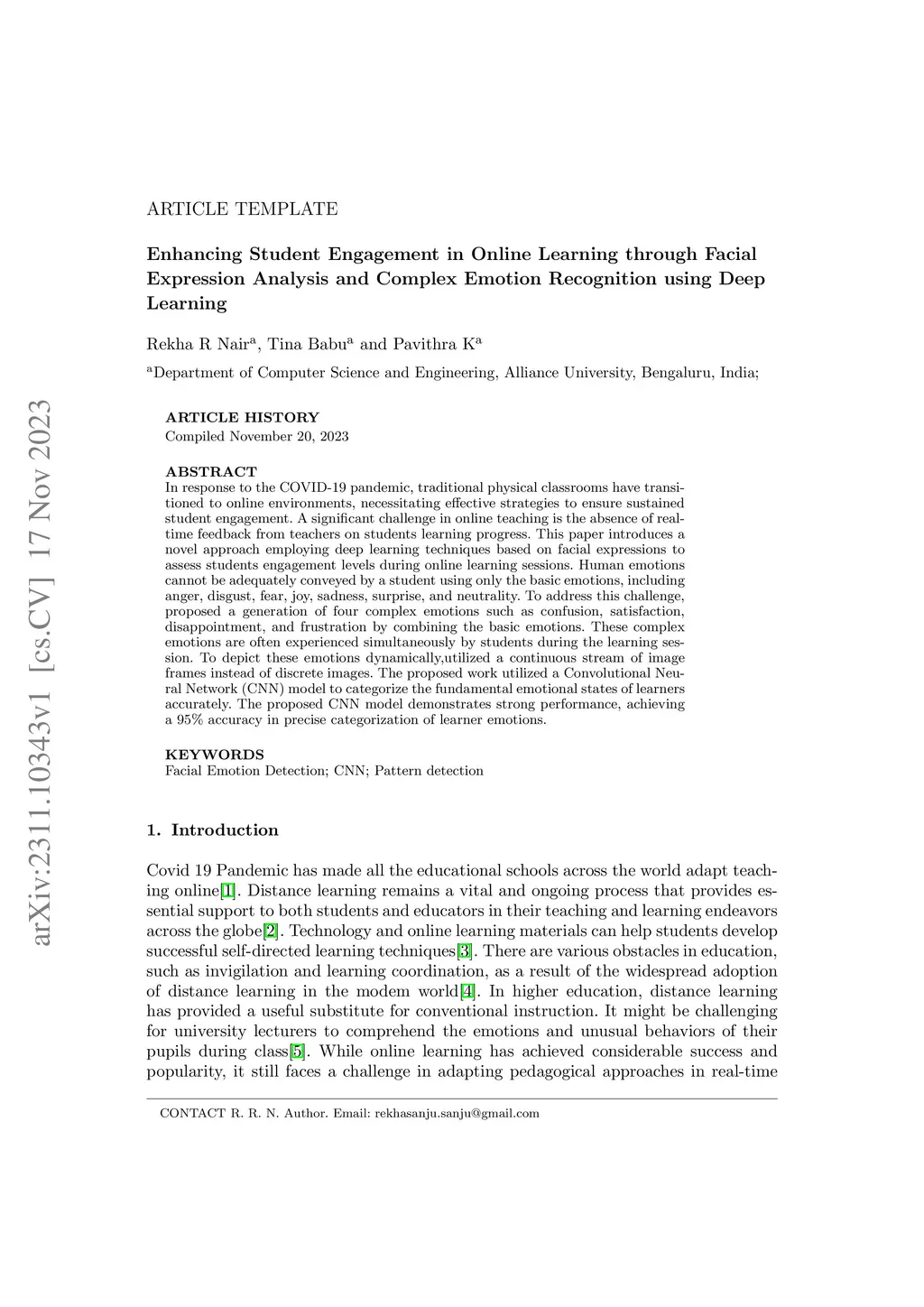 Enhancing Student Engagement in Online Learning through Facial