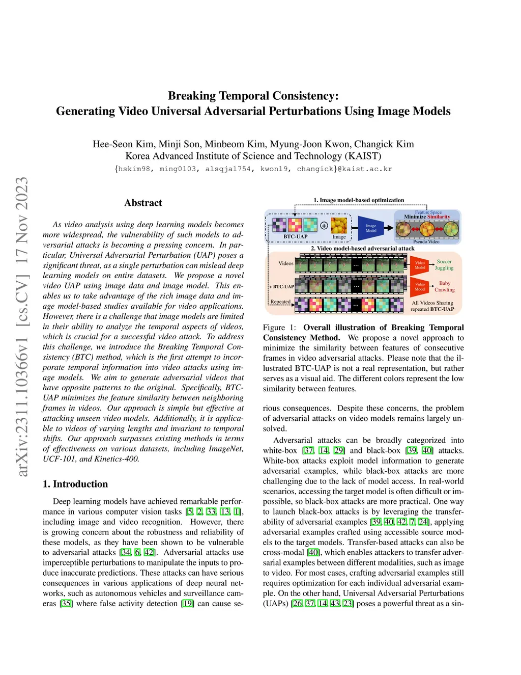 As video analysis using deep learning models becomes more widespread, the vulnerability of such models to adversarial attacks is becoming a pressing concern. In particular, Universal Adversarial Perturbation (UAP) poses a significant threat, as a single perturbation can mislead deep learning models on entire datasets. We propose a novel video UAP using image data and image model. This enables us to take advantage of the rich image data and image model-based studies available for video applications. However, there is a challenge that image models are limited in their ability to analyze the temporal aspects of videos, which is crucial for a successful video attack. To address this challenge, we introduce the Breaking Temporal Consistency (BTC) method, which is the first attempt to incorporate temporal information into video attacks using image models. We aim to generate adversarial videos that have opposite patterns to the original. Specifically, BTC-UAP minimizes the feature similarity between neighboring frames in videos. Our approach is simple but effective at attacking unseen video models. Additionally, it is applicable to videos of varying lengths and invariant to temporal shifts. Our approach surpasses existing methods in terms of effectiveness on various datasets, including ImageNet, UCF-101, and Kinetics-400.