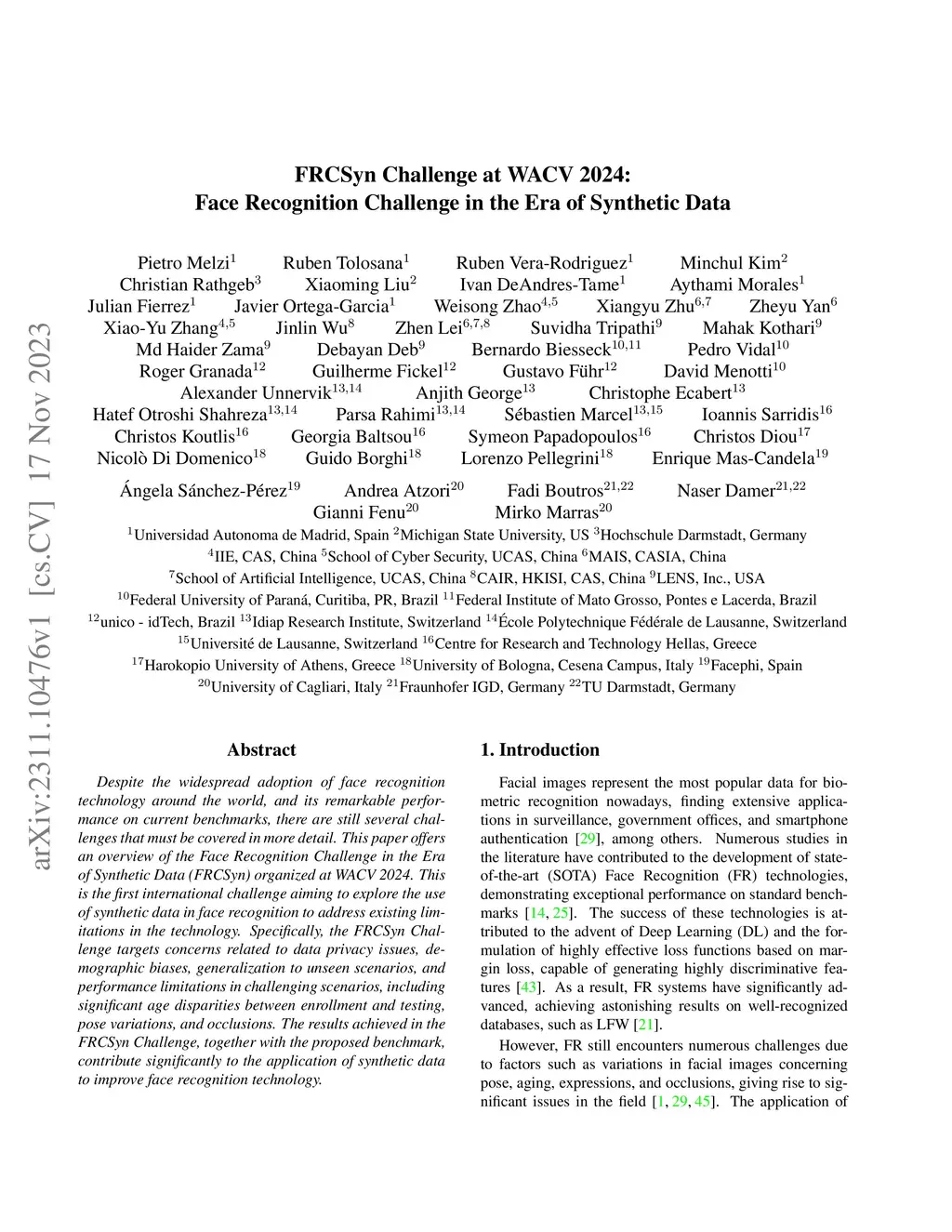 FRCSyn Challenge at WACV 2024:Face Recognition Challenge in the Era of