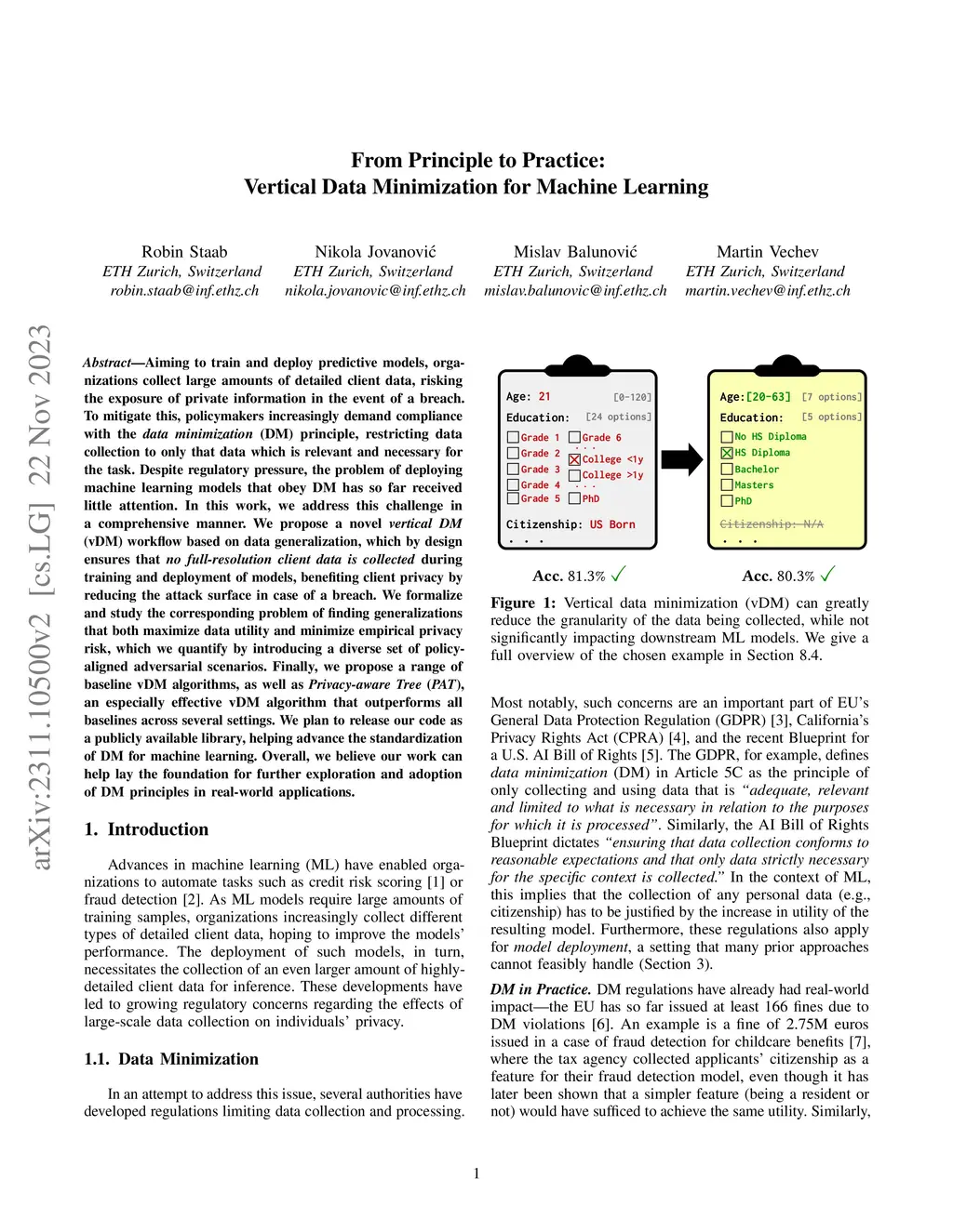 From Principle to Practice: Vertical Data Minimization for Machine