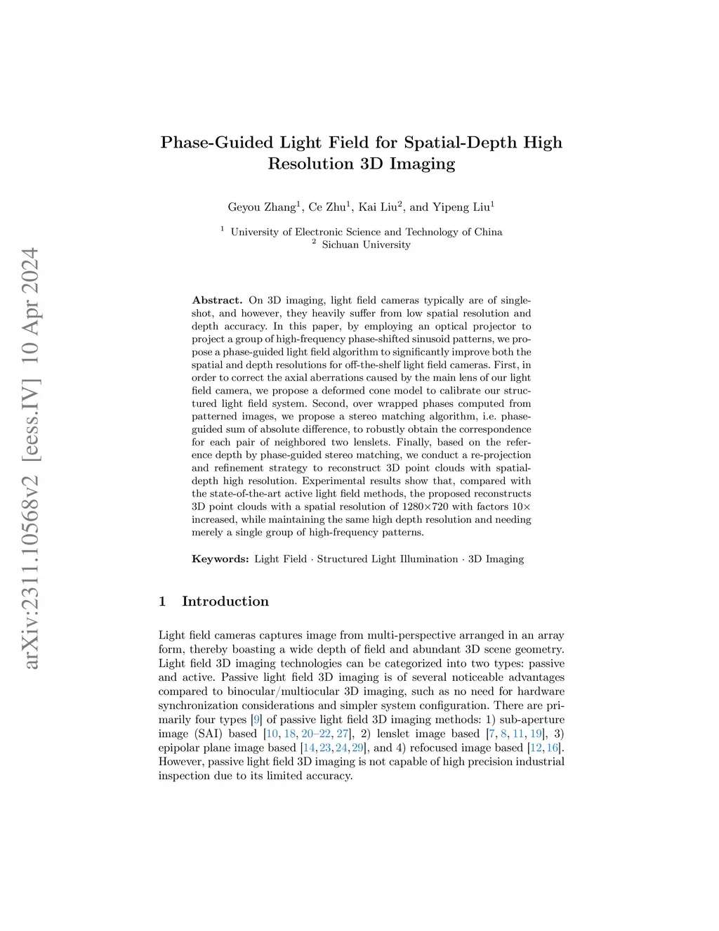 Phase Guided Light Field for Spatial-Depth High Resolution 3D Imaging