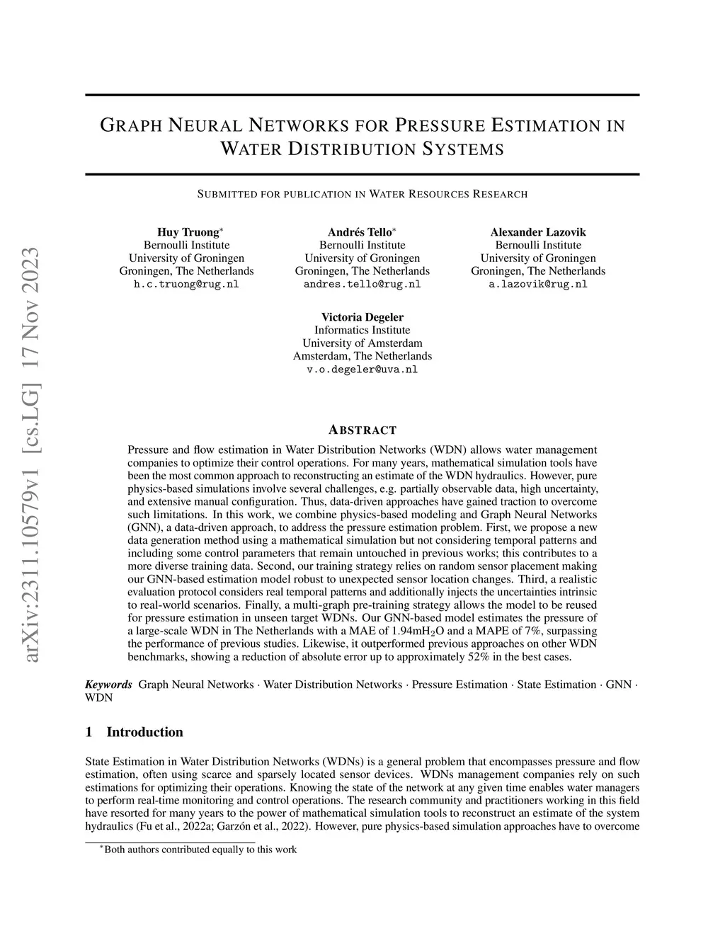 Graph Neural Networks for Pressure Estimation in Water Distribution
