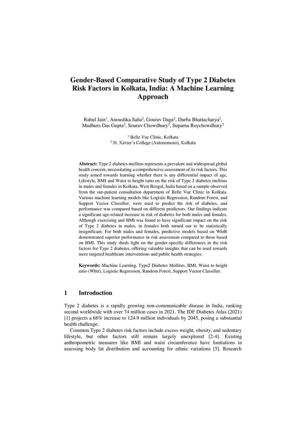 Type 2 diabetes mellitus represents a prevalent and widespread global health concern, necessitating a comprehensive assessment of its risk factors. This study aimed towards learning whether there is any differential impact of age, Lifestyle, BMI and Waist to height ratio on the risk of Type 2 diabetes mellitus in males and females in Kolkata, West Bengal, India based on a sample observed from the out-patient consultation department of Belle Vue Clinic in Kolkata. Various machine learning models like Logistic Regression, Random Forest, and Support Vector Classifier, were used to predict the risk of diabetes, and performance was compared based on different predictors. Our findings indicate a significant age-related increase in risk of diabetes for both males and females. Although exercising and BMI was found to have significant impact on the risk of Type 2 diabetes in males, in females both turned out to be statistically insignificant. For both males and females, predictive models based on WhtR demonstrated superior performance in risk assessment compared to those based on BMI. This study sheds light on the gender-specific differences in the risk factors for Type 2 diabetes, offering valuable insights that can be used towards more targeted healthcare interventions and public health strategies.