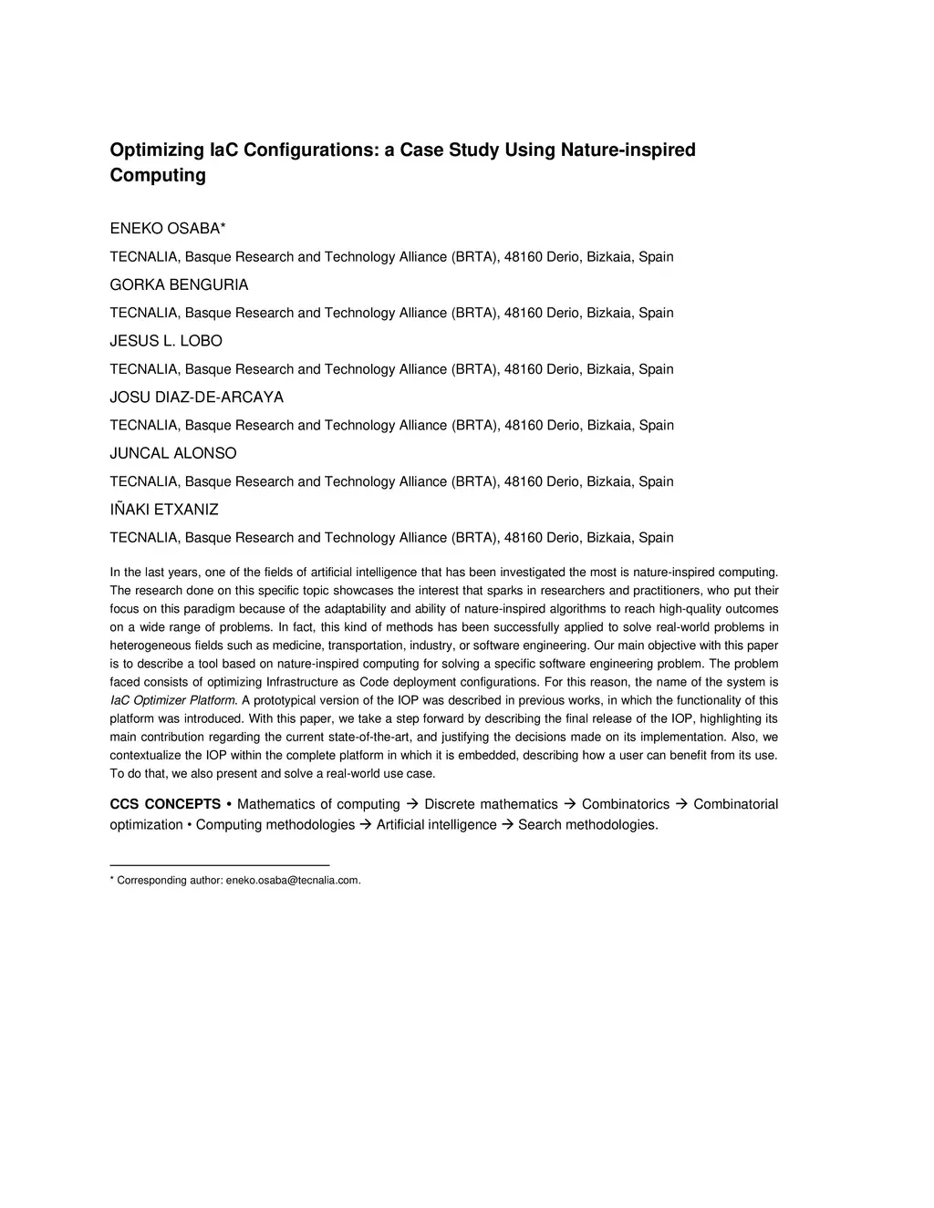 In the last years, one of the fields of artificial intelligence that has been investigated the most is nature-inspired computing. The research done on this specific topic showcases the interest that sparks in researchers and practitioners, who put their focus on this paradigm because of the adaptability and ability of nature-inspired algorithms to reach high-quality outcomes on a wide range of problems. In fact, this kind of methods has been successfully applied to solve real-world problems in heterogeneous fields such as medicine, transportation, industry, or software engineering. Our main objective with this paper is to describe a tool based on nature-inspired computing for solving a specific software engineering problem. The problem faced consists of optimizing Infrastructure as Code deployment configurations. For this reason, the name of the system is IaC Optimizer Platform. A prototypical version of the IOP was described in previous works, in which the functionality of this platform was introduced. With this paper, we take a step forward by describing the final release of the IOP, highlighting its main contribution regarding the current state-of-the-art, and justifying the decisions made on its implementation. Also, we contextualize the IOP within the complete platform in which it is embedded, describing how a user can benefit from its use. To do that, we also present and solve a real-world use case.