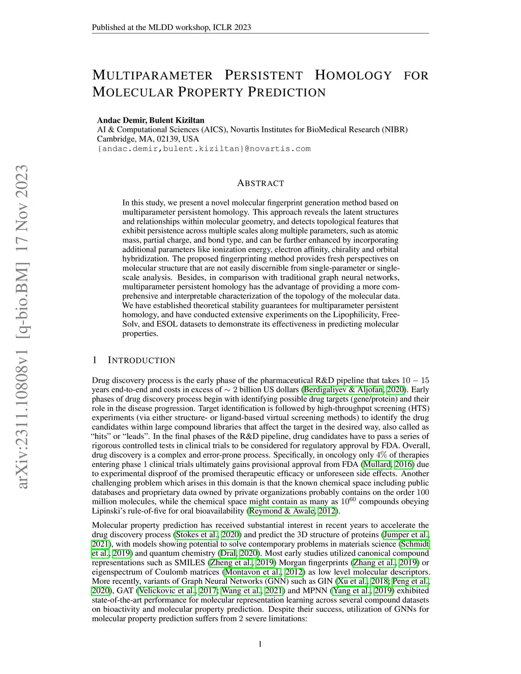 Multiparameter Persistent Homology for Molecular Property Prediction
