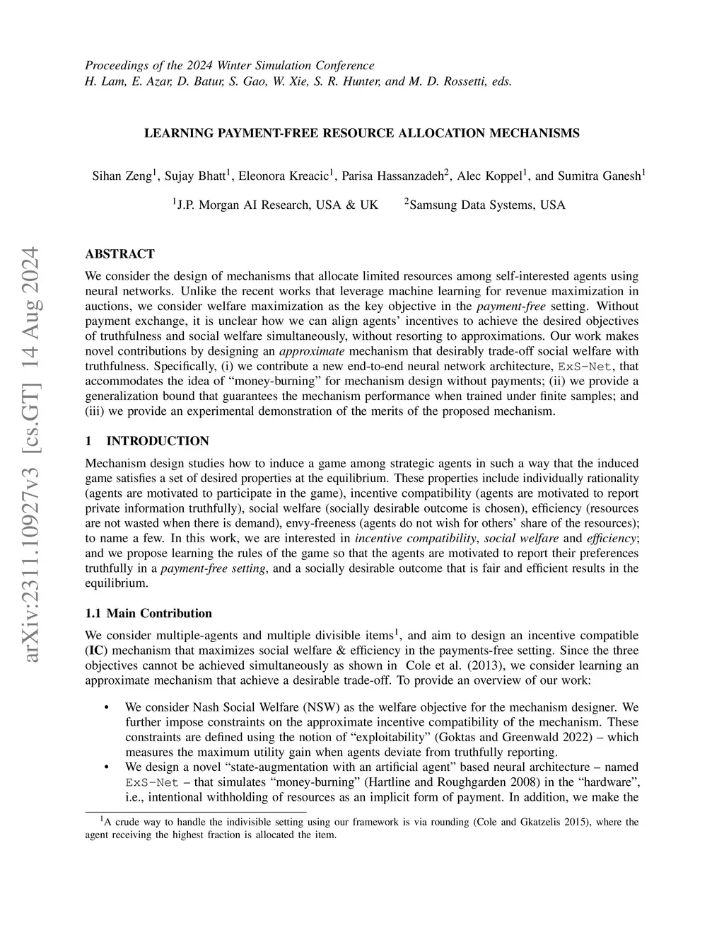 We consider the design of mechanisms that allocate limited resources among self-interested agents using neural networks. Unlike the recent works that leverage machine learning for revenue maximization in auctions, we consider welfare maximization as the key objective in the payment-free setting. Without payment exchange, it is unclear how we can align agents' incentives to achieve the desired objectives of truthfulness and social welfare simultaneously, without resorting to approximations. Our work makes novel contributions by designing an approximate mechanism that desirably trade-off social welfare with truthfulness. Specifically, (i) we contribute a new end-to-end neural network architecture, ExS-Net, that accommodates the idea of "money-burning" for mechanism design without payments; (ii)~we provide a generalization bound that guarantees the mechanism performance when trained under finite samples; and (iii) we provide an experimental demonstration of the merits of the proposed mechanism.