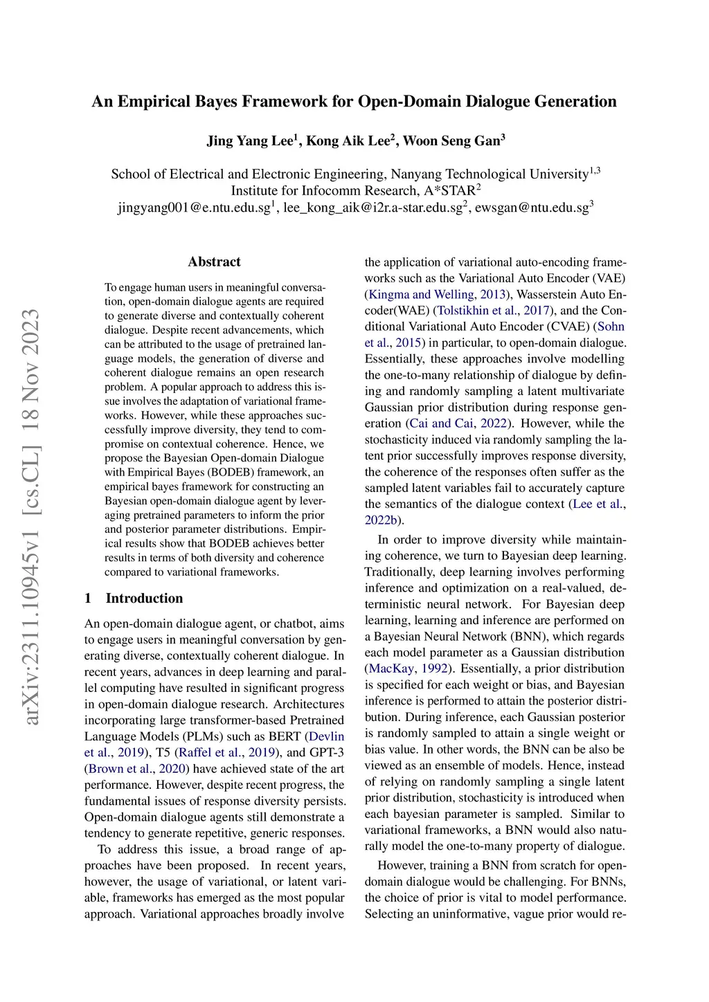 An Empirical Bayes Framework for Open-Domain Dialogue Generation