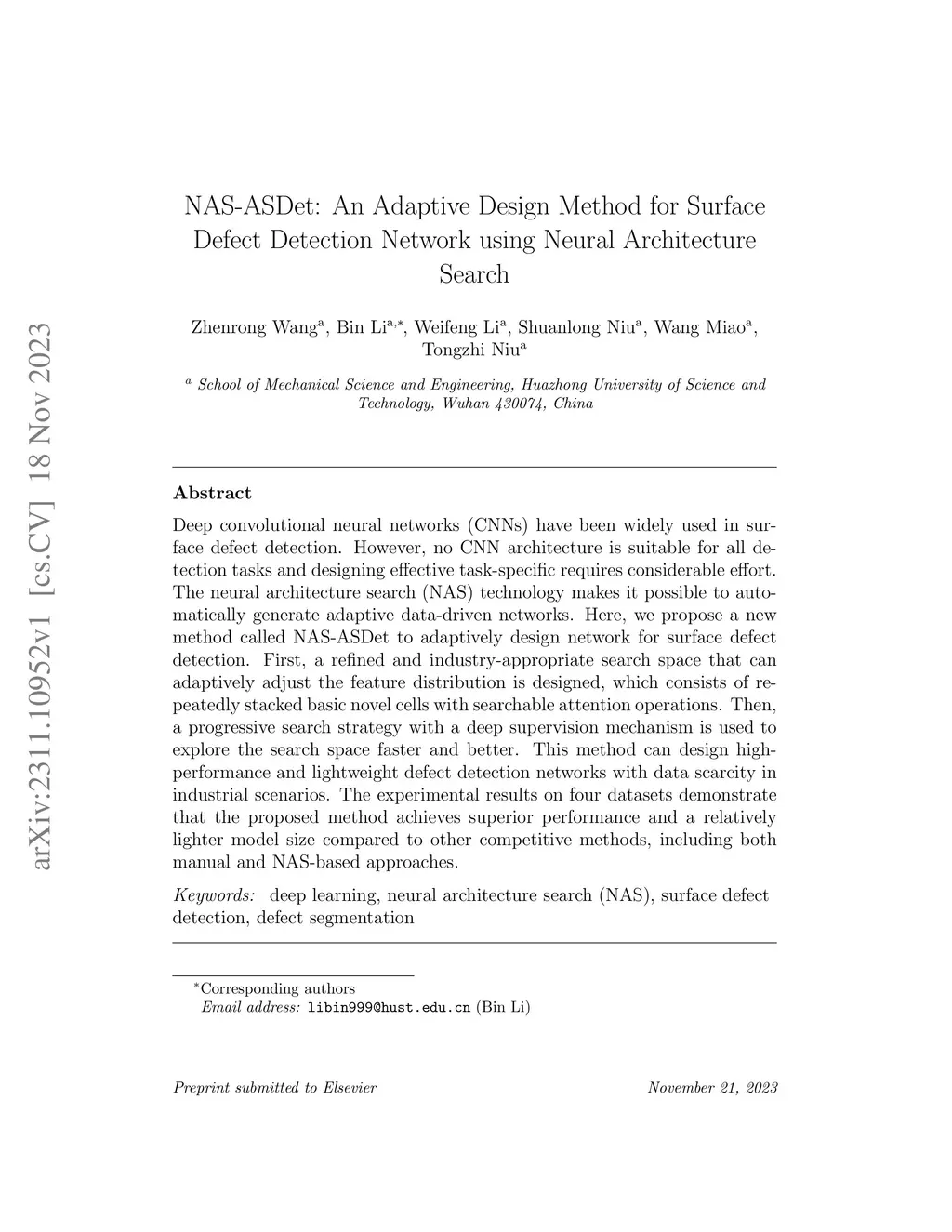 NAS-ASDet: An Adaptive Design Method for Surface Defect Detection