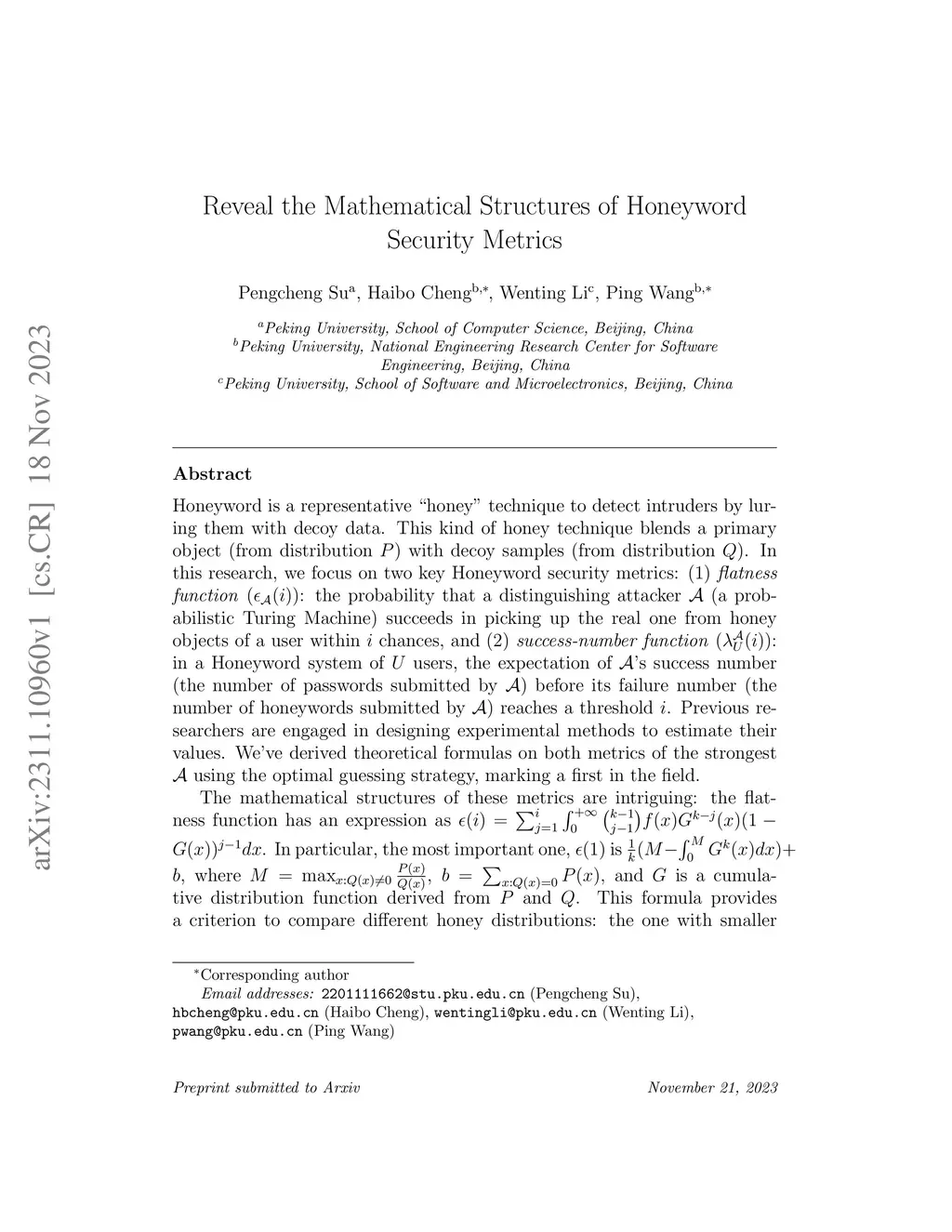 Honeyword is a representative "honey" technique that employs decoy objects to mislead adversaries and protect the real ones. To assess the security of a Honeyword system, two metrics--flatness and success-number--have been proposed and evaluated using various simulated attackers. Existing evaluations typically apply statistical learning methods to distinguish real passwords from decoys on real-world datasets. However, such evaluations may overestimate the system's security, as more effective distinguishing attacks could potentially exist.In this paper, we aim to analyze the security of Honeyword systems under the strongest theoretical attack, rather than relying on specific, expert-crafted attacks evaluated in prior experimental studies. We first derive mathematical expressions for the flatness and success-number under the strongest attack. We conduct analyses and computations for several typical scenarios, and determine the security of honeyword generation methods using a uniform distribution and the List model as examples.We further evaluate the security of existing honeyword generation methods based on password probability models (PPMs), which depends on the sample size used for training. We investigate, for the first time, the sample complexity of several representative PPMs, introducing two novel polynomial-time approximation schemes for computing the total variation between PCFG models and between higher-order Markov models. Our experimental results show that for small-scale password distributions, sample sizes on the order of millions--often tens of millions--are required to reduce the total variation below 0.1. A surprising result is that we establish an equivalence between flatness and total variation, thus bridging the theoretical study of Honeyword systems with classical information theory. Finally, we discuss the practical implications of our findings.