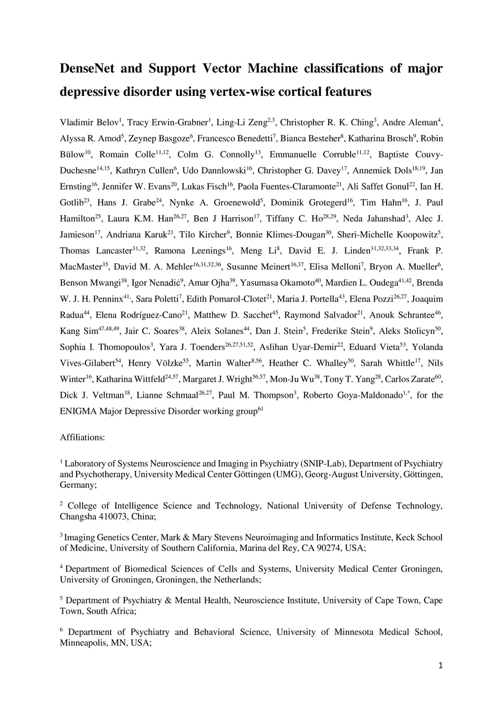 Classification of Major Depressive Disorder Using Vertex-Wise Brain Sulcal Depth, Curvature, and Thickness with a Deep and a Shallow Learning Model
