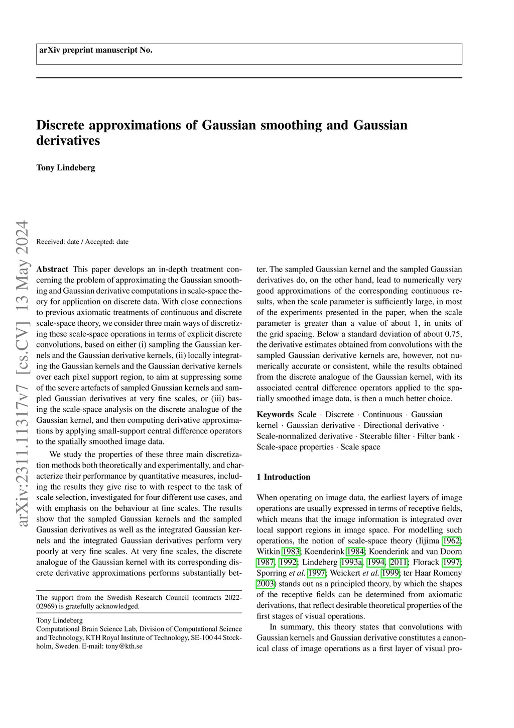 Discrete approximations of Gaussian smoothing and Gaussian derivatives