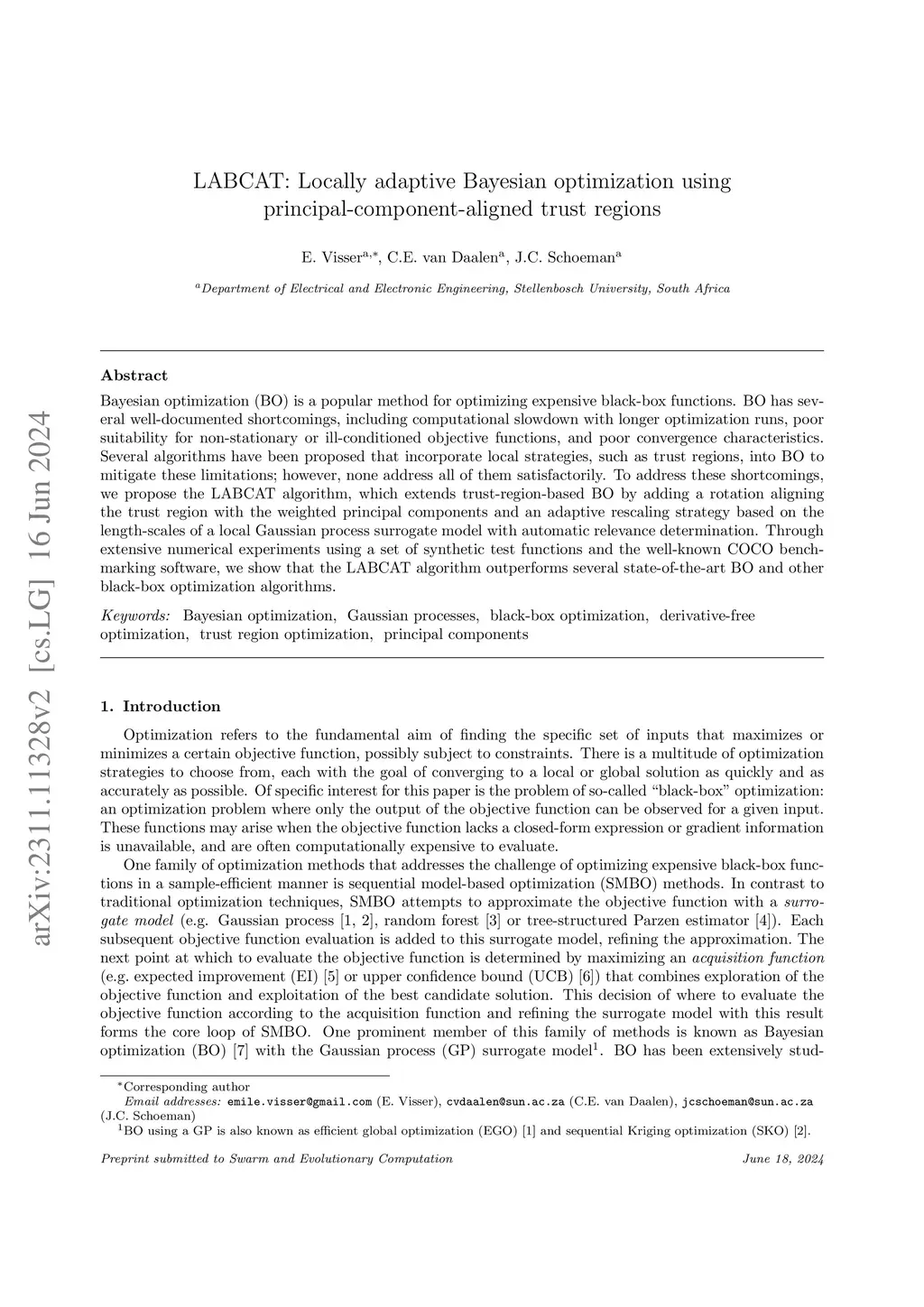 LABCAT: Locally adaptive Bayesian optimization using