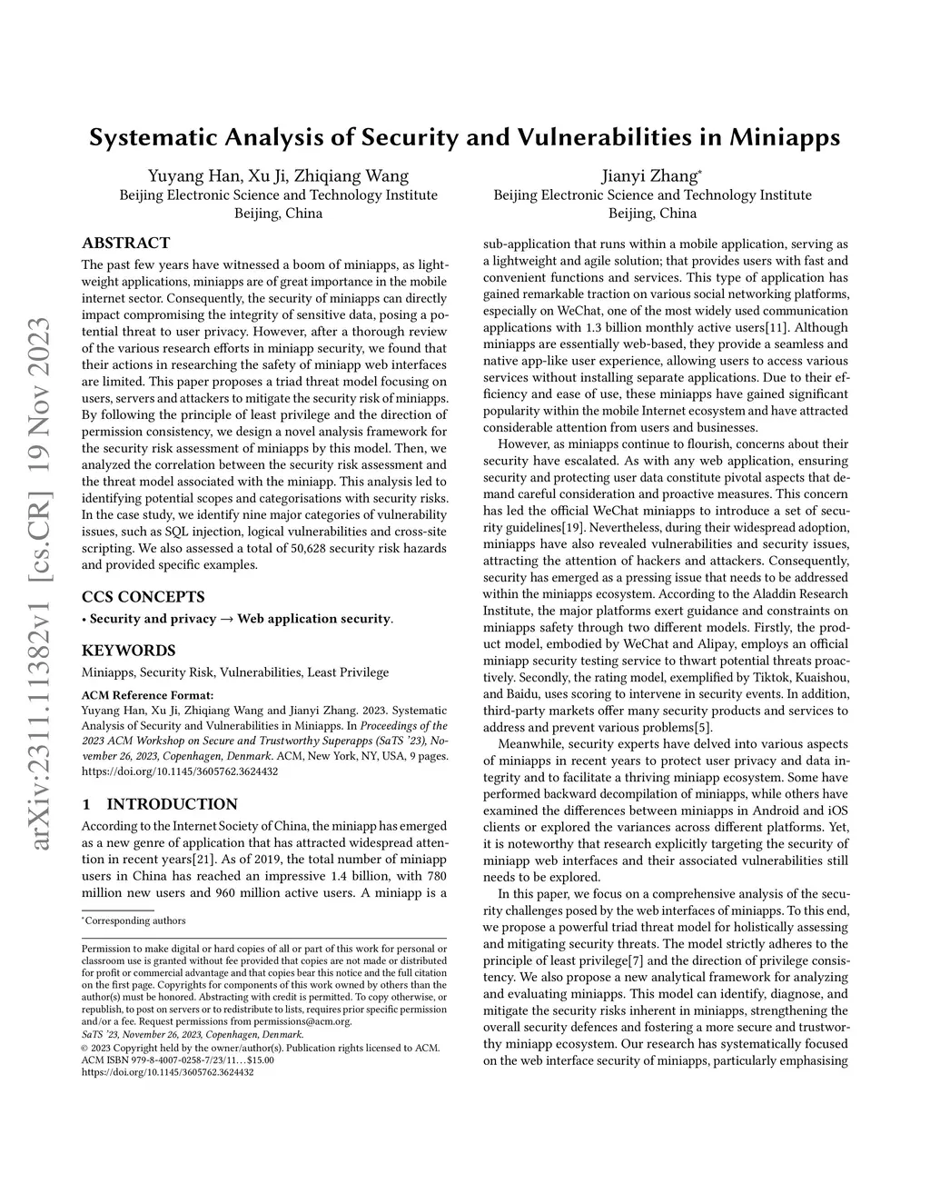 Systematic Analysis of Security and Vulnerabilities in Miniapps