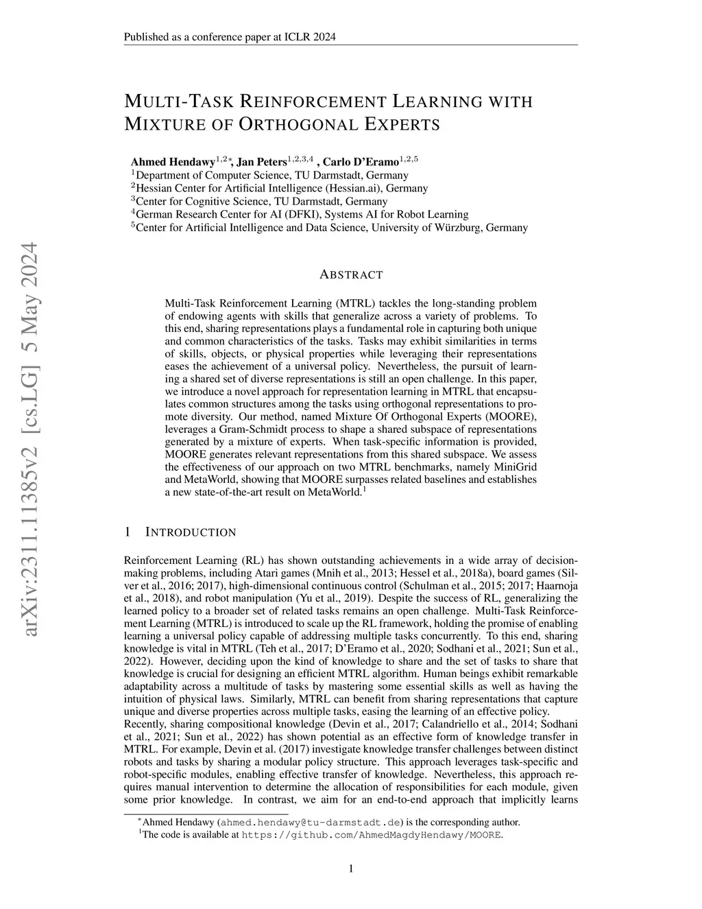 Multi-Task Reinforcement Learning with Mixture of Orthogonal Experts