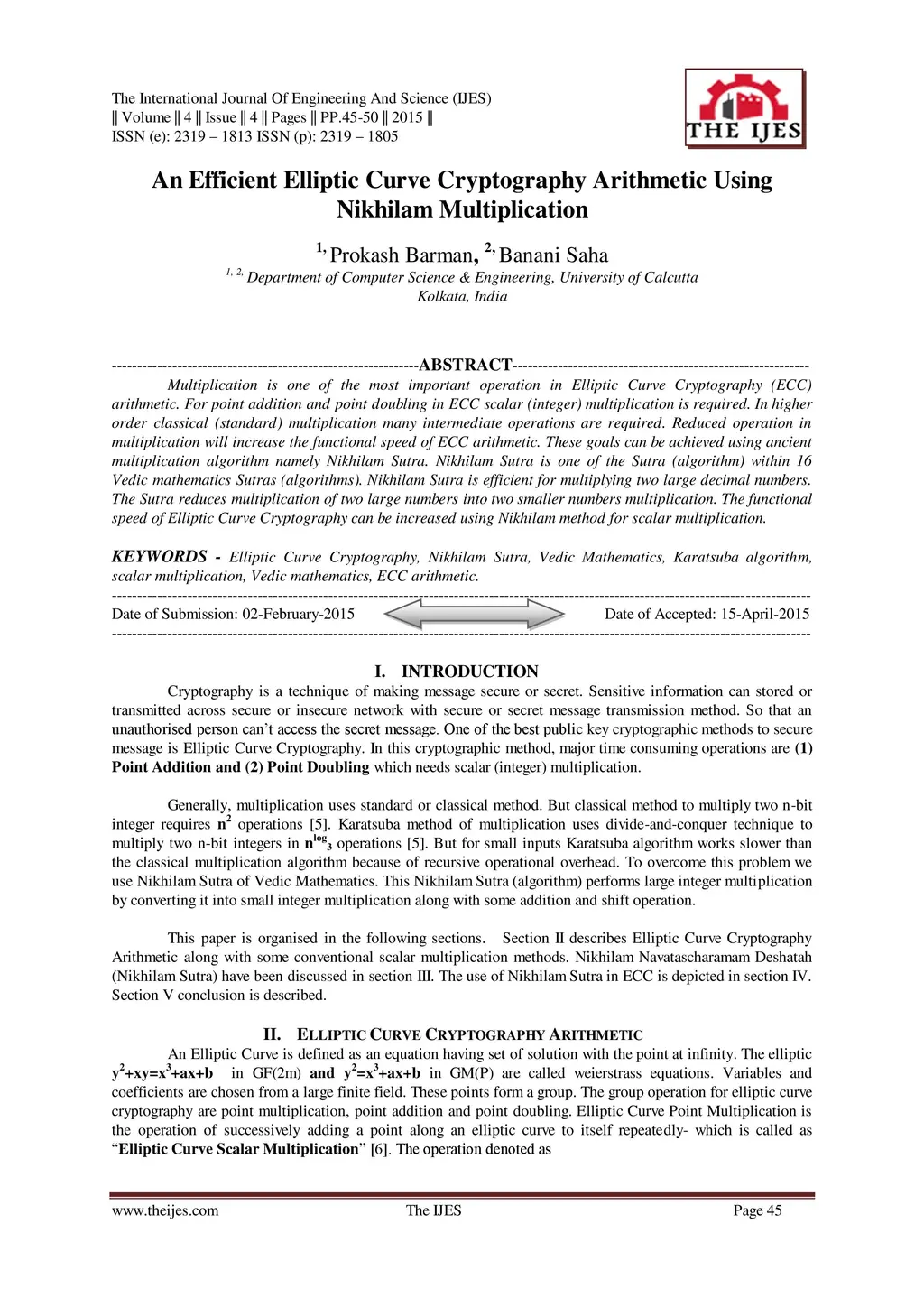 An Efficient Elliptic Curve Cryptography Arithmetic Using Nikhilam