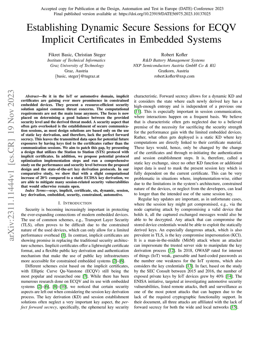 Establishing Dynamic Secure Sessions for ECQV Implicit Certificates in