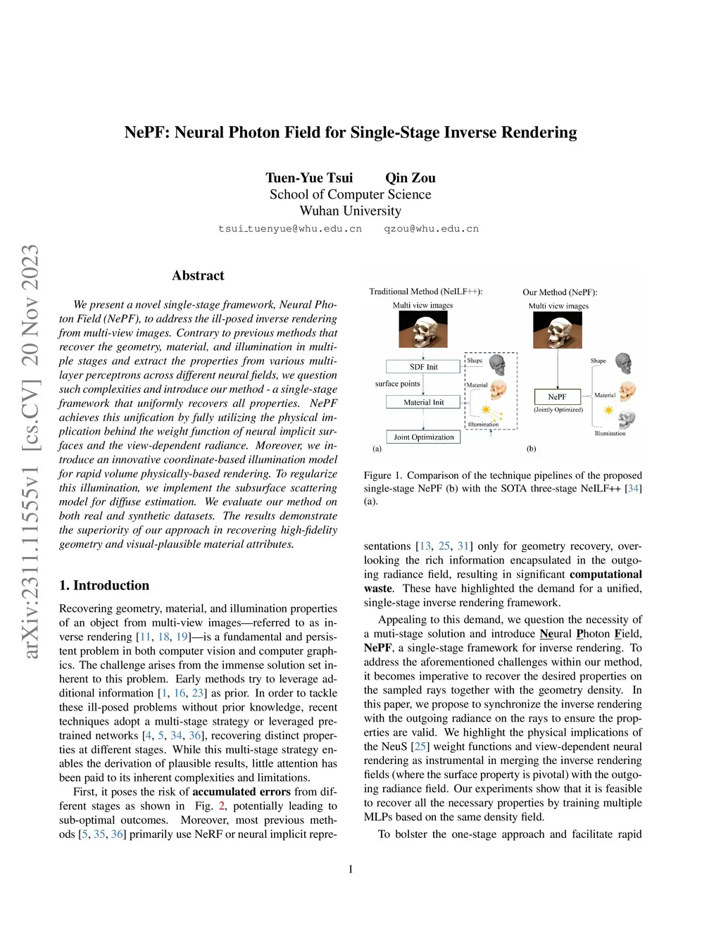 NePF: Neural Photon Field for Single-Stage Inverse Rendering