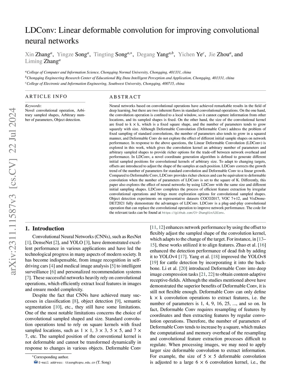 AKConv: Convolutional Kernel with Arbitrary Sampled Shapes and Arbitrary