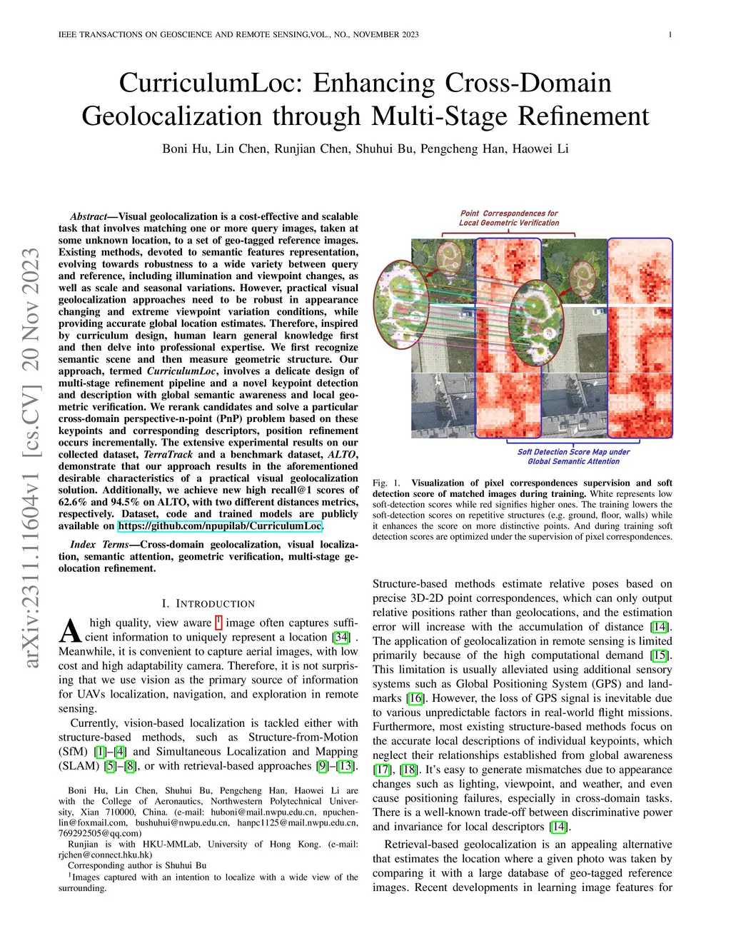 Visual geolocalization is a cost-effective and scalable task that involves matching one or more query images, taken at some unknown location, to a set of geo-tagged reference images. Existing methods, devoted to semantic features representation, evolving towards robustness to a wide variety between query and reference, including illumination and viewpoint changes, as well as scale and seasonal variations. However, practical visual geolocalization approaches need to be robust in appearance changing and extreme viewpoint variation conditions, while providing accurate global location estimates. Therefore, inspired by curriculum design, human learn general knowledge first and then delve into professional expertise. We first recognize semantic scene and then measure geometric structure. Our approach, termed CurriculumLoc, involves a delicate design of multi-stage refinement pipeline and a novel keypoint detection and description with global semantic awareness and local geometric verification. We rerank candidates and solve a particular cross-domain perspective-n-point (PnP) problem based on these keypoints and corresponding descriptors, position refinement occurs incrementally. The extensive experimental results on our collected dataset, TerraTrack and a benchmark dataset, ALTO, demonstrate that our approach results in the aforementioned desirable characteristics of a practical visual geolocalization solution. Additionally, we achieve new high recall@1 scores of 62.6% and 94.5% on ALTO, with two different distances metrics, respectively. Dataset, code and trained models are publicly available on https://github.com/npupilab/CurriculumLoc.