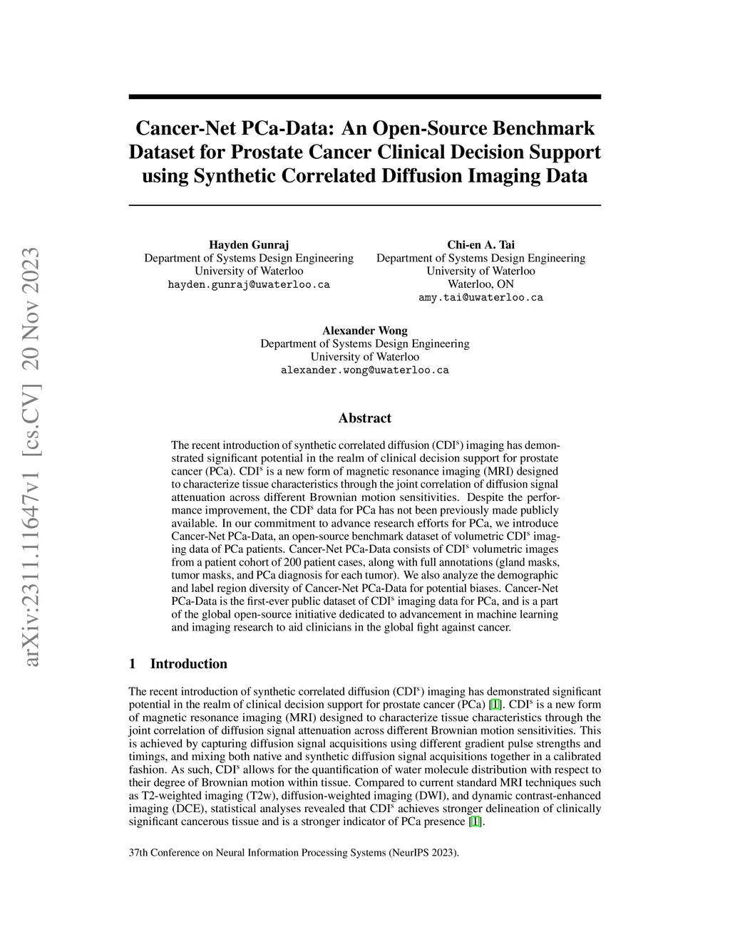 Cancer Clinical Decision Support using Synthetic Correlated Diffusion Imaging