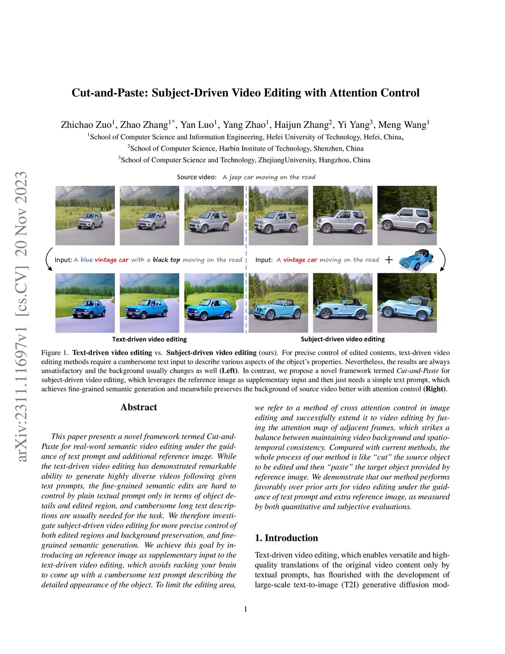 This paper presents a novel framework termed Cut-and-Paste for real-word semantic video editing under the guidance of text prompt and additional reference image. While the text-driven video editing has demonstrated remarkable ability to generate highly diverse videos following given text prompts, the fine-grained semantic edits are hard to control by plain textual prompt only in terms of object details and edited region, and cumbersome long text descriptions are usually needed for the task. We therefore investigate subject-driven video editing for more precise control of both edited regions and background preservation, and fine-grained semantic generation. We achieve this goal by introducing an reference image as supplementary input to the text-driven video editing, which avoids racking your brain to come up with a cumbersome text prompt describing the detailed appearance of the object. To limit the editing area, we refer to a method of cross attention control in image editing and successfully extend it to video editing by fusing the attention map of adjacent frames, which strikes a balance between maintaining video background and spatio-temporal consistency. Compared with current methods, the whole process of our method is like ``cut" the source object to be edited and then ``paste" the target object provided by reference image. We demonstrate that our method performs favorably over prior arts for video editing under the guidance of text prompt and extra reference image, as measured by both quantitative and subjective evaluations.