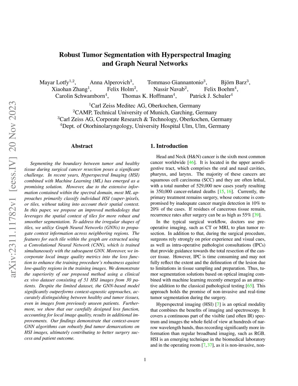 Robust Tumor Segmentation with Hyperspectral Imaging and Graph Neural Networks