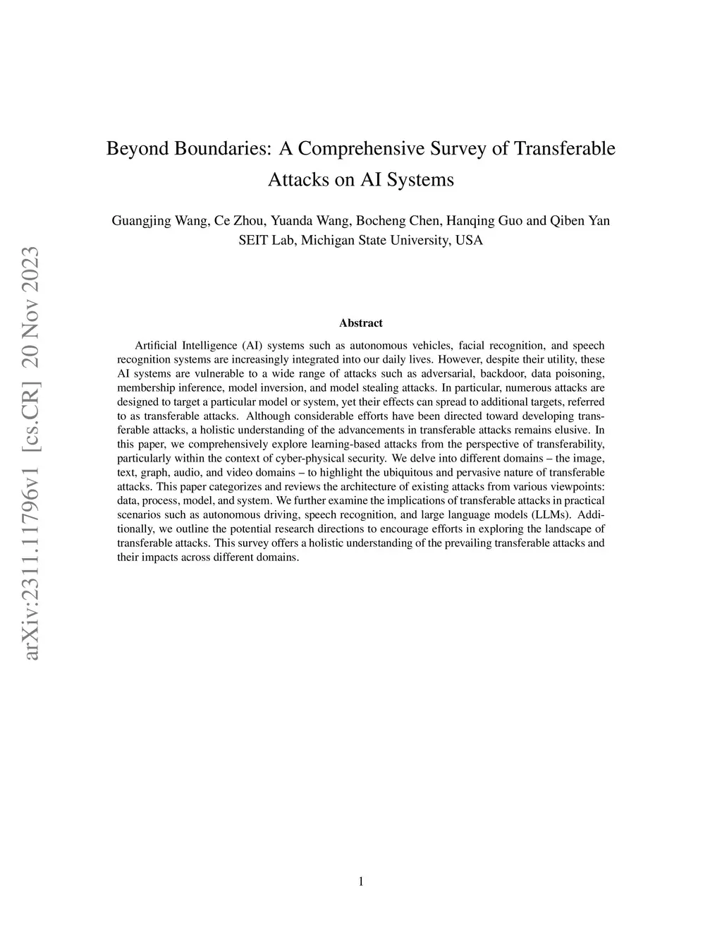 Beyond Boundaries: A Comprehensive Survey of Transferable Attacks on AI Systems